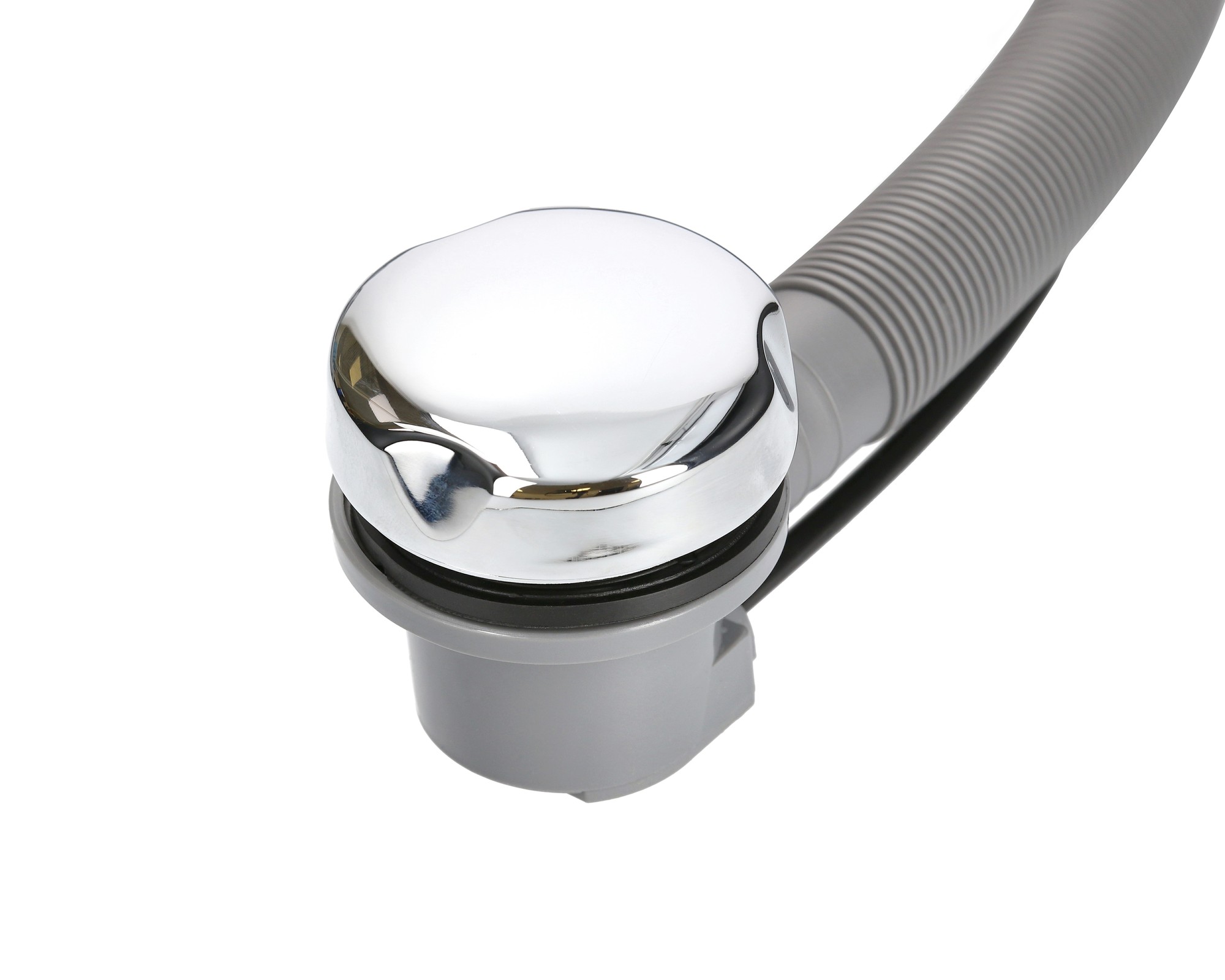 Plus produit Construction métal avec cuvette et clapet en inox, finition chromée poli, manipulation fluide et étanche, sortie à visser Ø40 mm, câble 500 mm, adapté pour pose sur baignoire