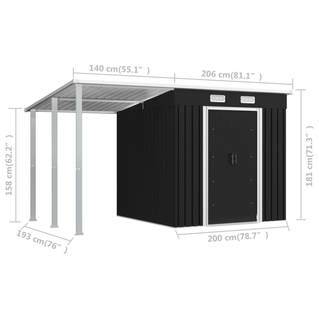 | Libellé | vidaXL Abri de jardin avec toit étendu Anthracite 346x193x181 cm Acier |