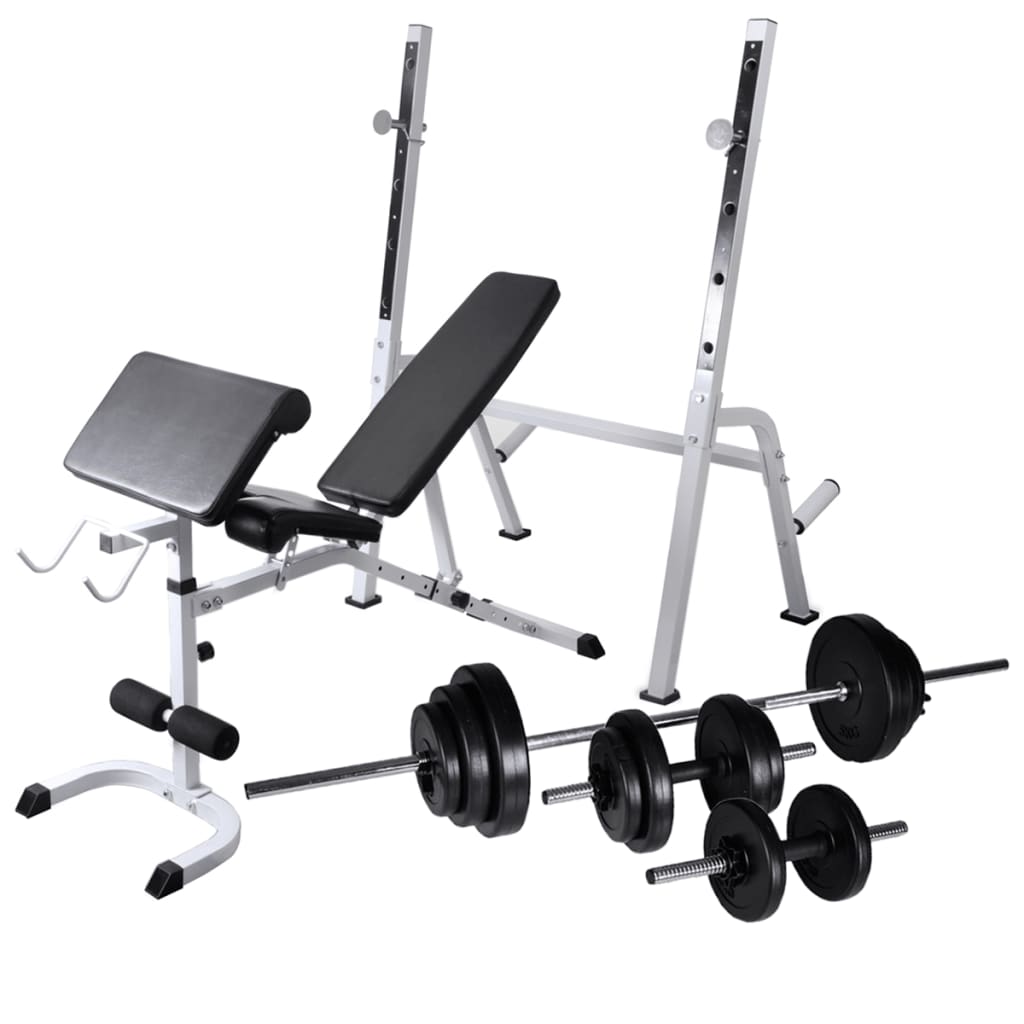 vidaXL Banc d'entraînement avec support de poids jeu d'haltères 30,5kg