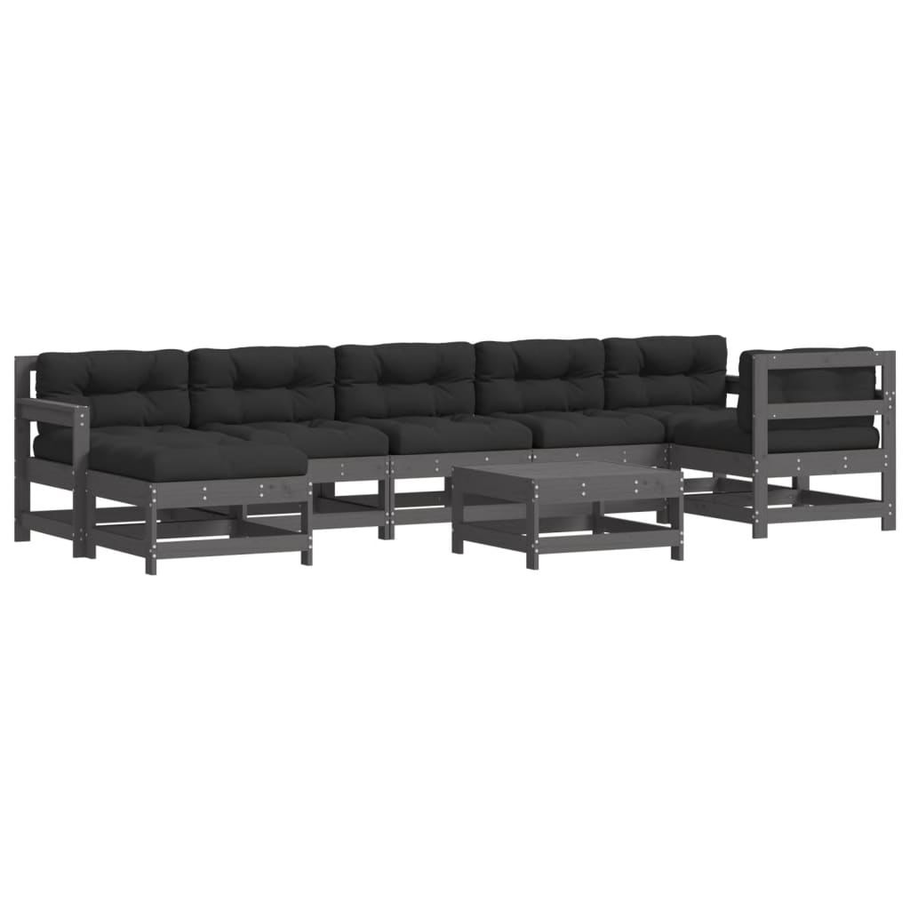 vidaXL Salon de jardin 8 pcs avec coussins gris bois massif