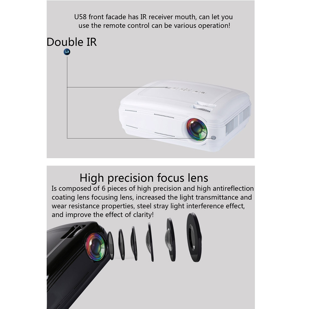 Vidéoprojecteur Android 6.0 Bluetooth 4.0 3200 Lumens LED 1080P HDMI USB Tv Noir