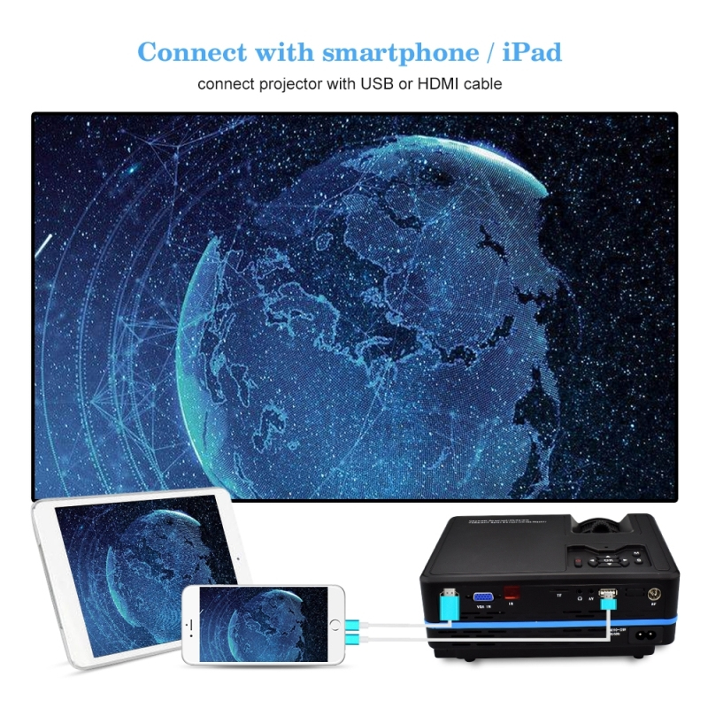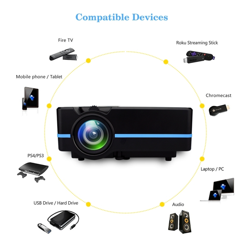 Ce vidéoprojecteur LED vous offre une expérience de cinéma unique à la maison. Il est facile à utiliser et vous permet de projeter des films, des images, des textes ou même de jouer à des jeux vidéo à votre domicile. La taille maximale des images est de 120 pouces.