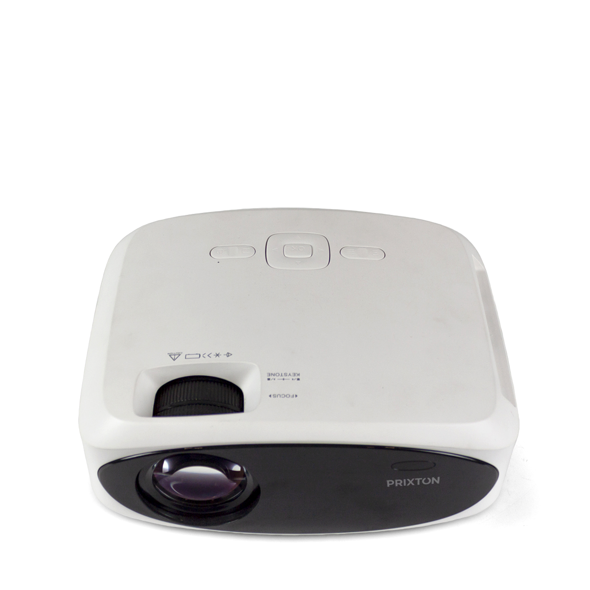 - Inclinaison et correction de l'image. Comprend deux systèmes de réglage de la vision. D'une part, une molette de mise au point sur le dessus du projecteur pour obtenir une image nette et claire. D'autre part, un pied dévissable en bas du projecteur pour obtenir une inclinaison verticale jusqu'à 15°.