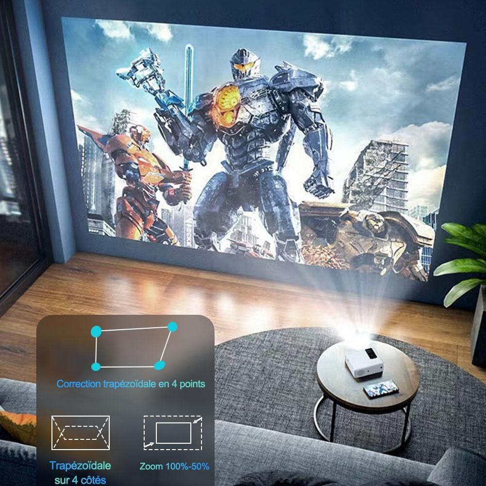 Libellé Vidéoprojecteur TROISC BETA, FULL HD 1080P Android Projecteur WiFi, 8000 lumens, 10000:1 Contraste, 100%-50% Zoom, Projection latérale, Bluetooth, Re