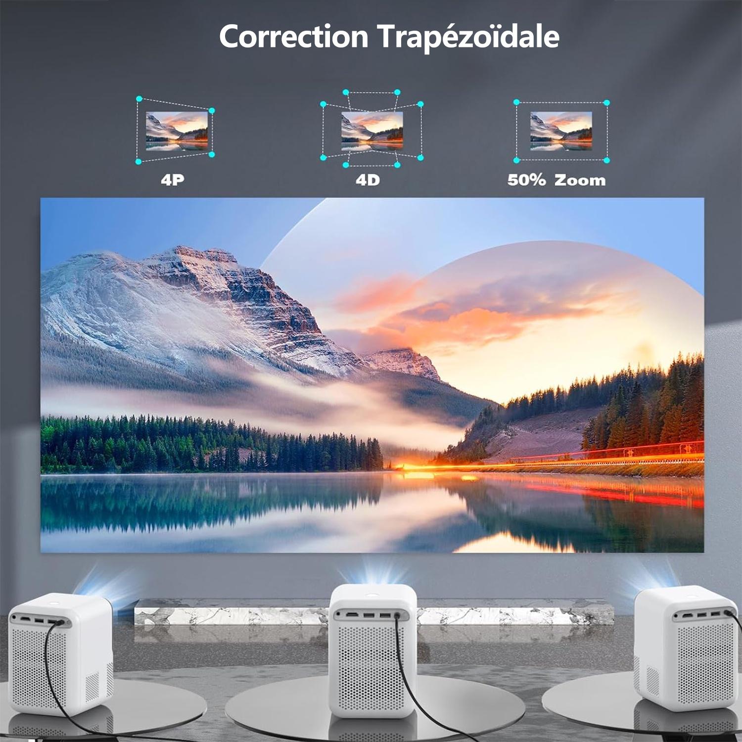 Libellé Vidéoprojecteur TROISC IOTA, Portable 1080P Projecteur Android WiFI 5.0 Bluetooth 5000 lumens, Home Cinéma 120'', Correction trapézoïdale 4D/4P, Zoom