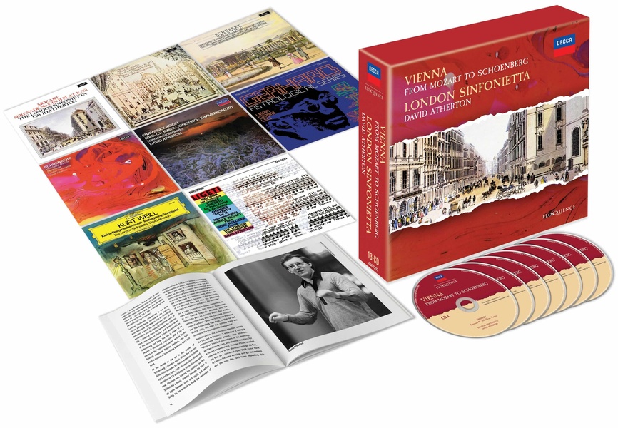 Vienne, l'ancienne et la nouvelle, se rencontrent dans ce voyage de Mozart à Schonberg de Berg à Weill, Gerhard à Ligeti avec David Atherton (90ème anniversaire en janvier 2025) et le Sinfonietta de Londres. Au centre de cette anthologie se trouve la musique pionnière de Schoenberg enregistré en 1973-1974, acclamée par la critique pour sa « grande ligne et son souci du détail (Stereo Review) et pour le « enregistrement suave et précis » (Gramophone).