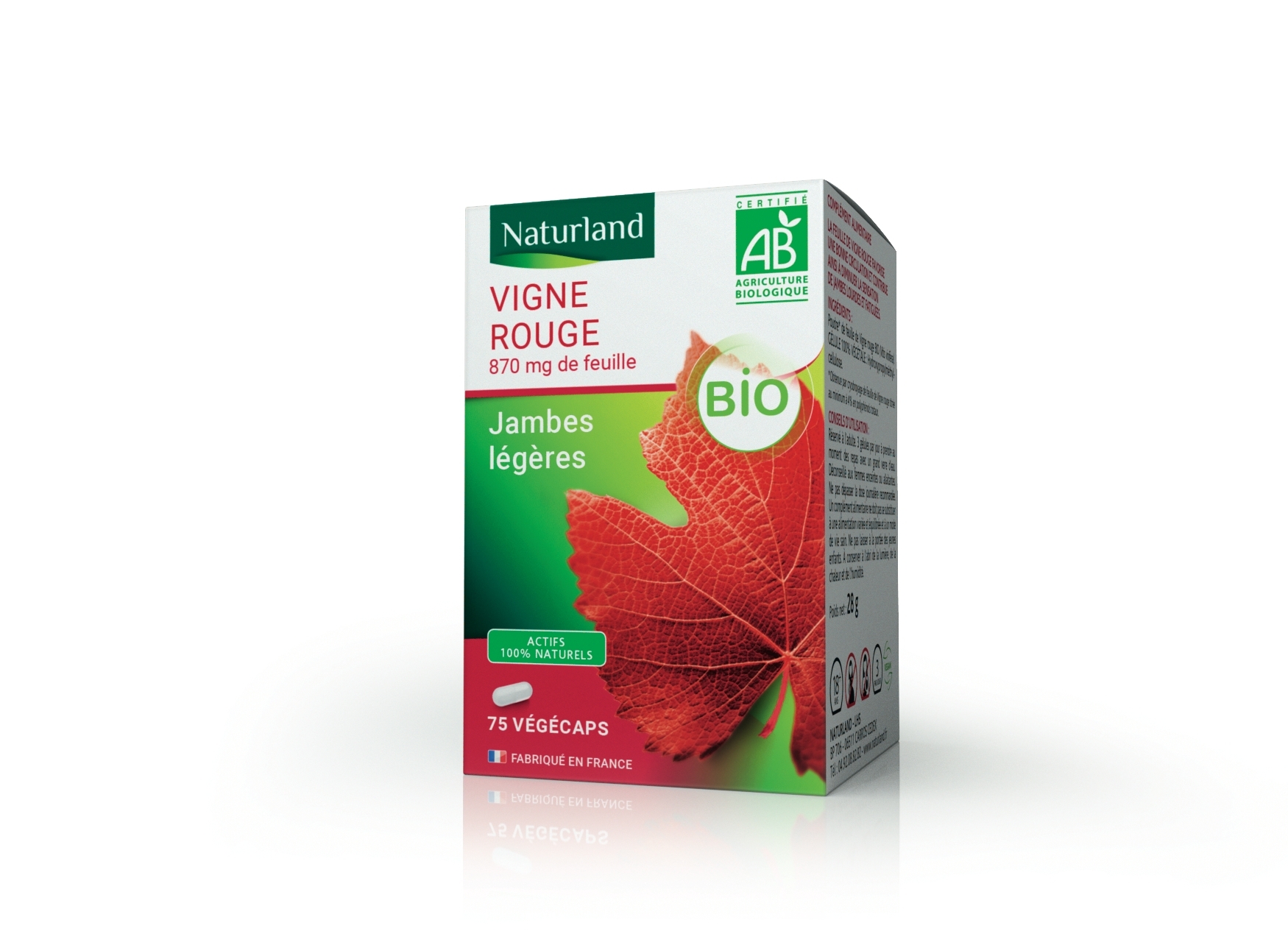 Vigne rouge bio, Jambes légères 75 végécaps