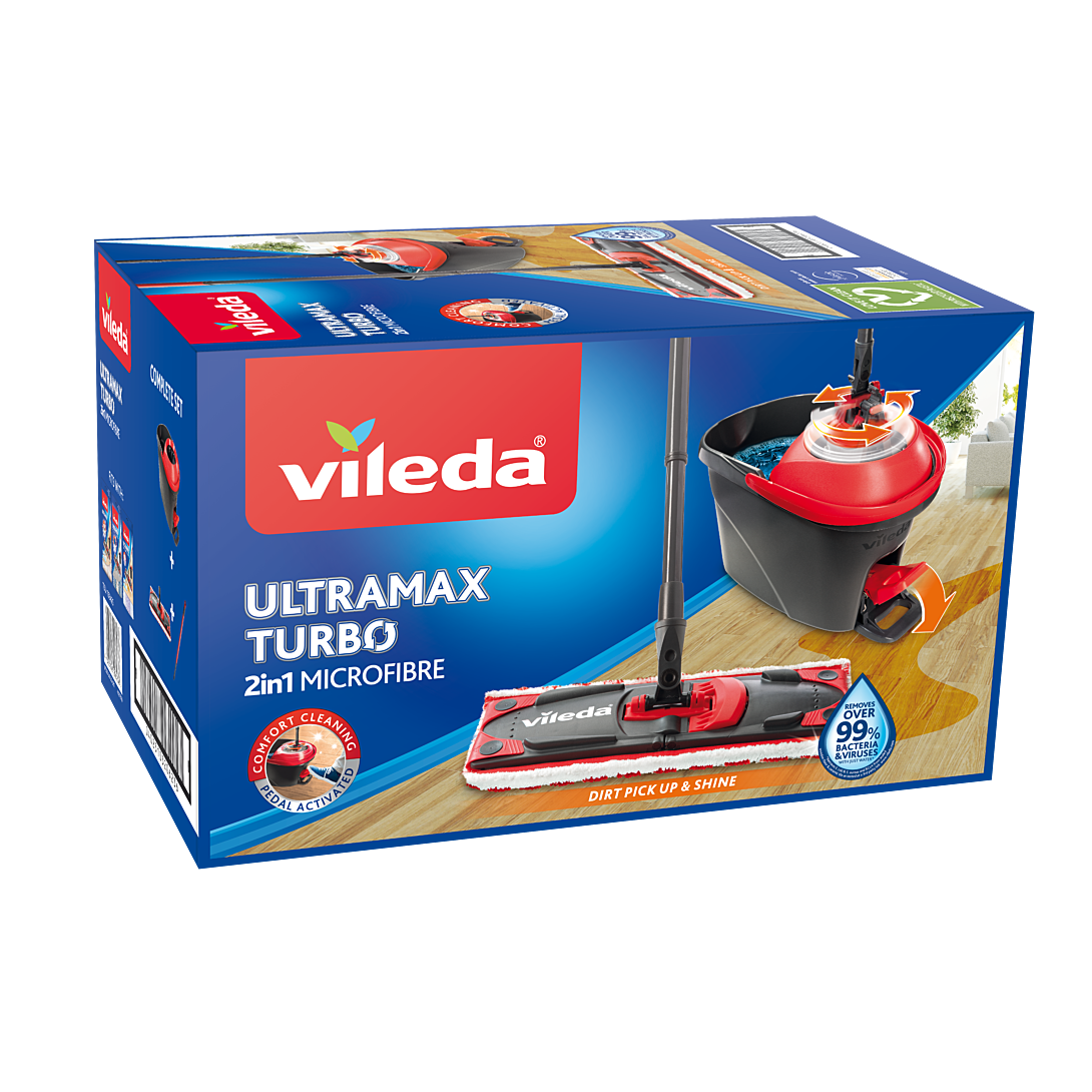 Technologie avancée de microfibres 2 en 1 — La recharge UltraMax de Vileda combine des fibres rouges et grises pour une capacité impressionnante à retirer les saletés les plus tenaces et des fibres blanches pour une excellente performance de nettoyage et des sols brillants. Retire plus de 99 % des bactéries — Grâce à la technologie avancée des microfibres, la recharge UltraMax de Vileda retire plus de 99% des bactéries avec juste de l'eau - pas besoin d'utiliser des produits détergents. Lavable en machine et réutilisable – La recharge UltraMax est lavable en machine jusqu'à 60 °C. Laver avec des textiles similaires. Pour un pouvoir nettoyant constant, nous conseillons de la remplacer tous les 6 mois. Convient à tous les types de sols — La recharge UltraMax peut être utilisée pour éliminer la graisse et les saletés tenaces sur tous les sols, tels que le carrelage, le vinyle, la pierre, le bois et le stratifié. Compatible avec tous les systèmes de balais à plats Vileda — La recharge UltraMax 2 en 1 peut être utilisée avec le set UltraMax, le set Ultramax Turbo et le 1.2. Spray.