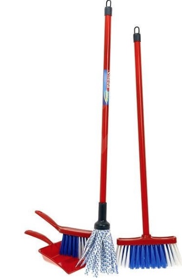 La boîte contient - 2 manche à balai - 1 pelle - 1 serpillière - 1 balayette