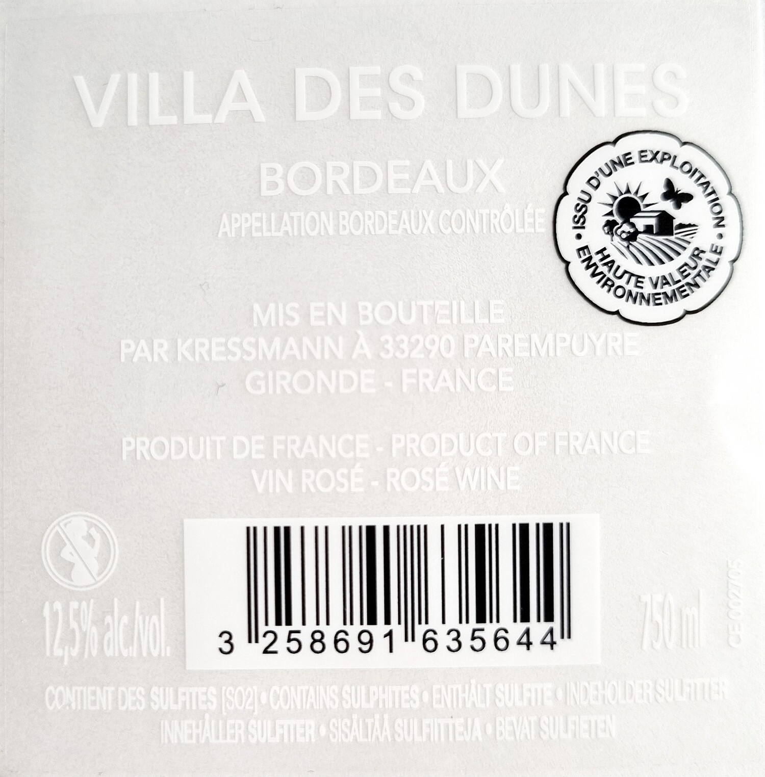 | Libellé | Villa des Dunes , 2024 - Bordeaux Rosé AOP - Rosé - 75 cl |