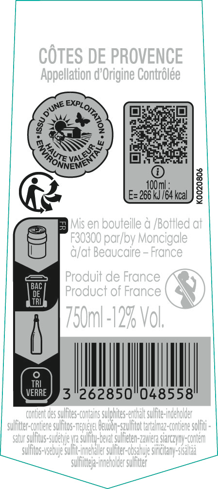 | Libellé | Villa Moncigale Cicada L'Eveil, 2023 - Côtes de Provence AOP - Rosé - 75 cl |