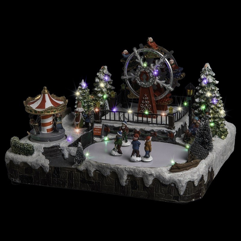Village de Noël avec carrousel et grande roueQuoi de plus festif qu'une fête foraine ? Ce grand village de Noël animé sera la plus belle des décorations de Noël. La grande roue et le carrousel vous rappelleront des souvenirs et l'ambiance musicale et lumineuse de la scène enchanteront les enfants. Admirez les 32 LEDS de couleurs multicolores et écoutez sa douce mélodie ! L'ambiance sera au rendez-vous durant toutes les fêtes de fin d'année. • Dimension (L x l x H) : 35 x 29 x 22 cm• Dimension colis (L x l x H) : 42 x 35 x 55 cm• Poids : 2,80 KG• Matière : polyrésine• Fonctionnement : sur un transformateur type E• Nombre de leds : 32 (couleur multicolore)• Effet de lumière : fixeAlimentation : TransformateurCouleur : MulticouleursCouleur LED : MulticouleursDimensions (L x l x H) : 35 x 29 x 22 cmDimensions colis (L x l x H) : 42 x 35 x 55 cmEffet de lumière : FixeMarque : JARDIDECOMatière(s) : PolyrésineNombre de LED / Lampe : 32Poids : 2,8 kgUtilisation : Intérieur