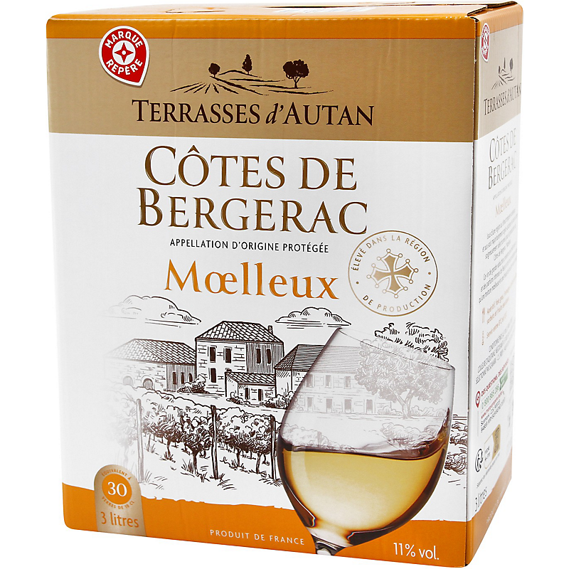 Vin Blanc Moelleux Côtes De Bergerac AOP - Bag-in-Box ® 3L - TERRASSES D'AUTAN