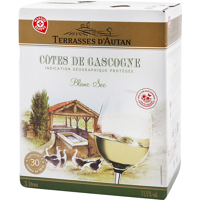 Vin Blanc Sec Côtes De Gascogne IGP - Bag-in-Box® 3L - TERRASSES D'AUTAN