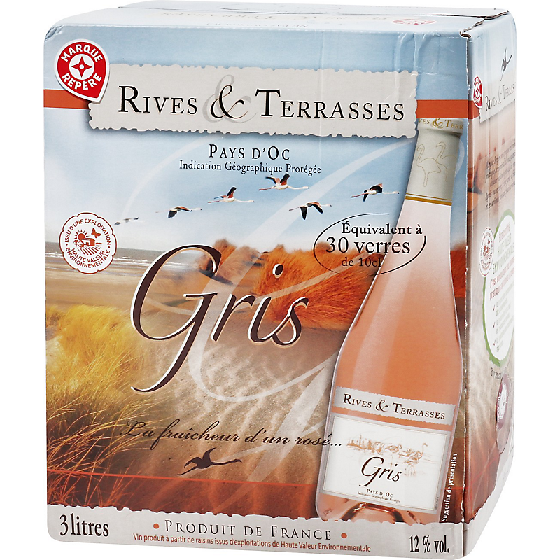 Vin Rosé Pays D’Oc Gris IGP - Bag-in-Box® 3L - RIVES ET TERRASSES