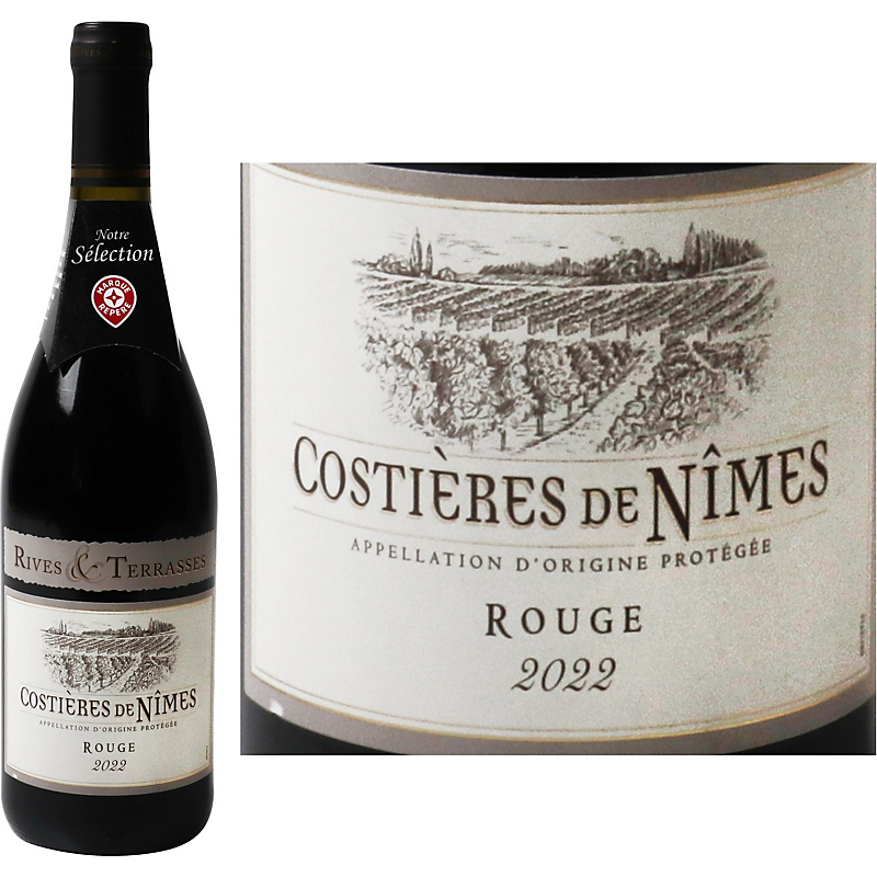 Vin Rouge Costières De Nîmes AOP - 75cl - RIVES ET TERRASSES