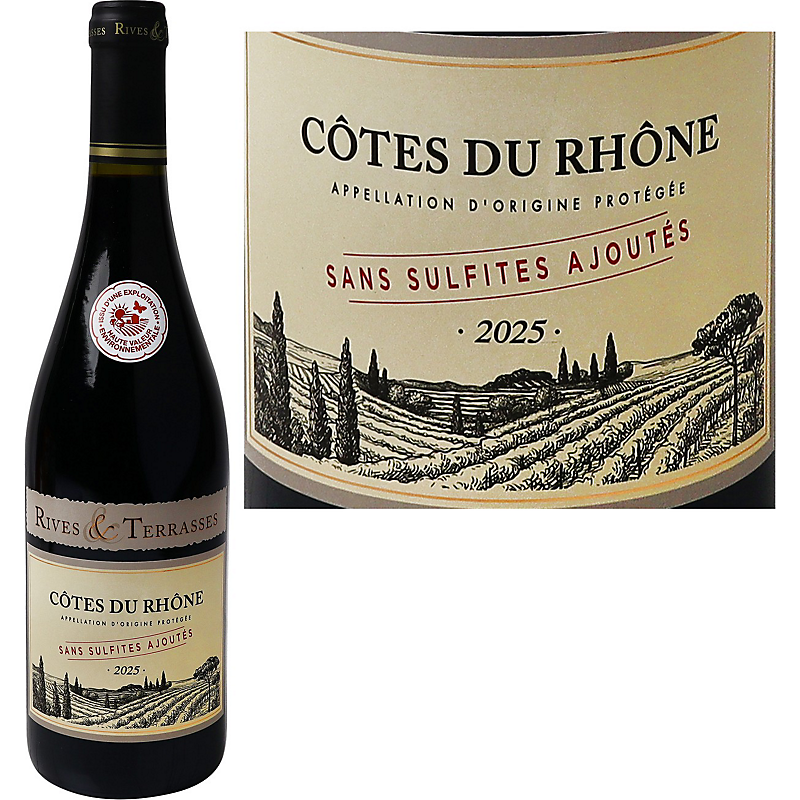 Côtes du Rhône - Appellation d'Origine Protégée - Sans Sulfites Ajoutés RIVES ET TERRASSES