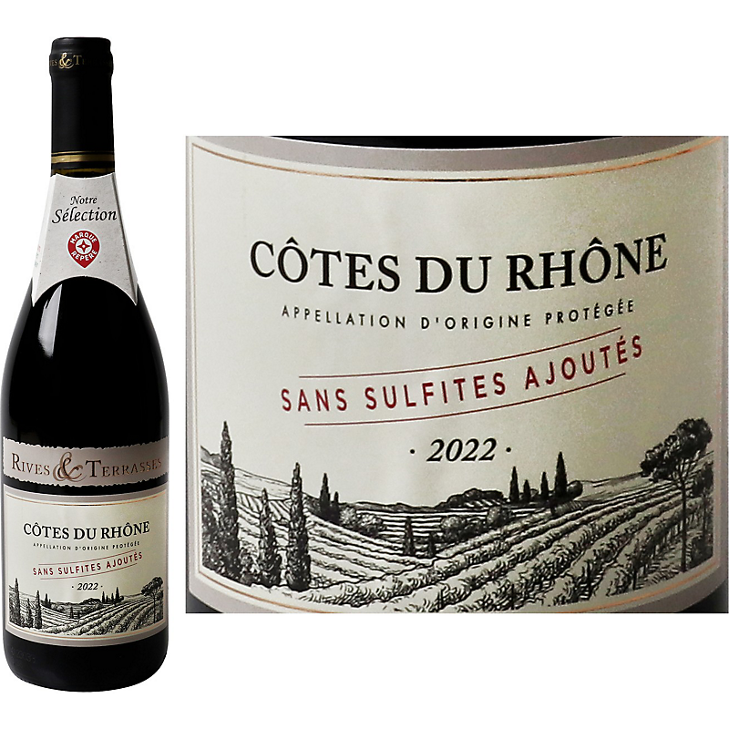 Vin Rouge Côtes Du Rhône Sans Sulfites AOP - 75cl - RIVES ET TERRASSES