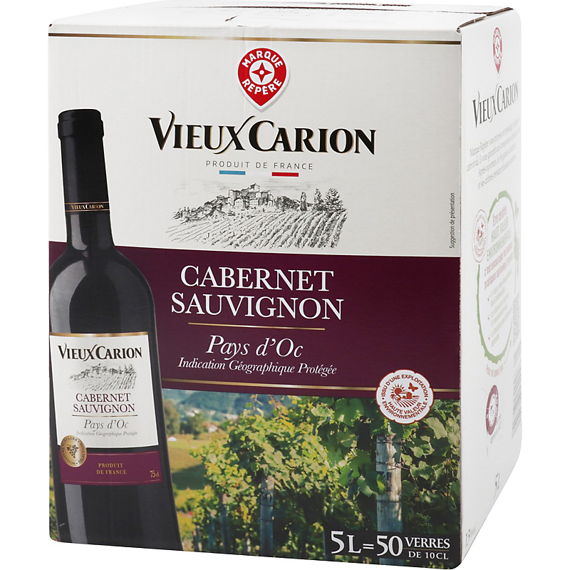 Vin Rouge Pays D’Oc Cabernet Sauvignon IGP - Bag-in-Box® 5L - VIEUX CARION