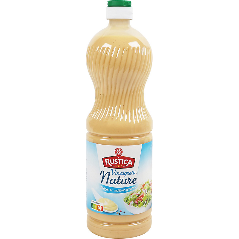 Vinaigrette nature allégée en matières grasses* *3 fois moins de matières grasses qu'une vinaigrette classique à 75 % d'huile : 2850 kJ (680 kcal) pour 100 g. RUSTICA
