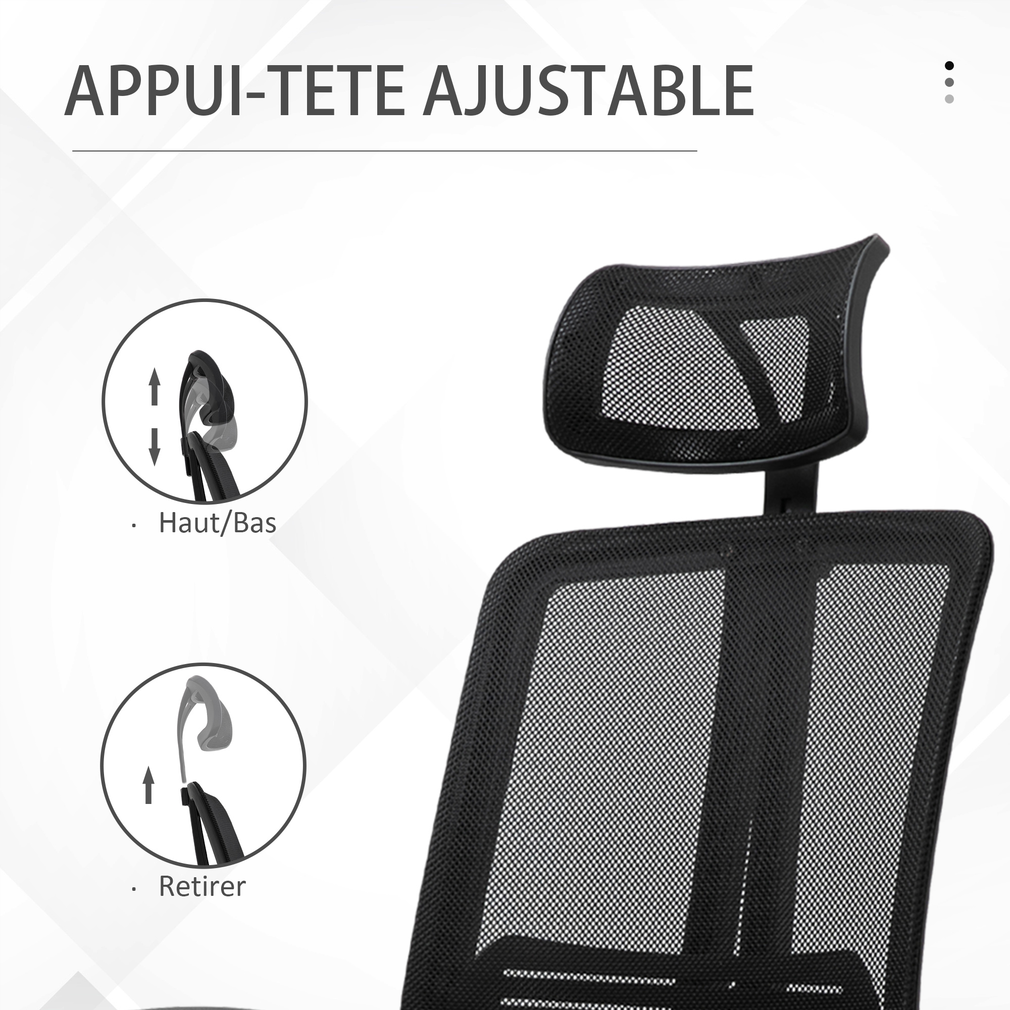 | Libellé | Vinsetto Fauteuil de bureau manager grand confort chaise de bureau réglable tissu maille polyester noir |