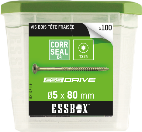 | Libellé | Vis ESSBOX SCELL-IT à bois - diam.5 mm x 80 mm - Boite de 100 - EX-1371181 |
