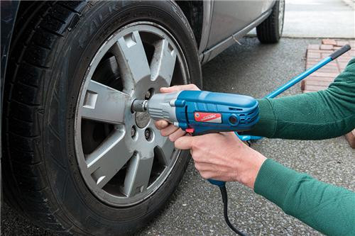 Visseuse dévisseuse à impact, clé à choc électrique livrée avec 4 douilles. Clé à chocs filaire à couple élevé de 350 Nm, conçue pour le vissage et dévissage. Gâchette de variation de la vitesse. Bouton d'inversion du sens de rotation. Poignée caoutchoutée réduisant les vibrations. Embout carré de 1/2" compatible avec les douilles moyennes et larges. Fournie avec 4 douilles 1/2" en acier trempé de 17,19, 21 et 23 mm. *Photo représentant le produit en utilisation.