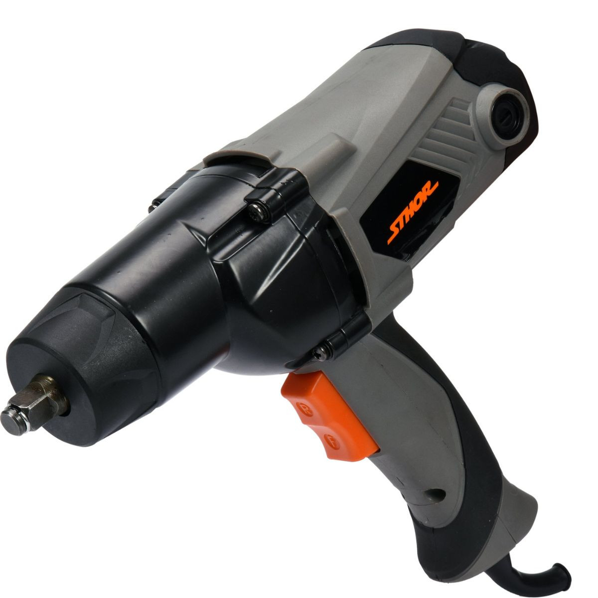 Clé à chocs filaire à couple élevé de 450 Nm - conçue pour le vissage et dévissage de boulons à couple élevé. Visseuse dévisseuse à impact, clé à choc électrique livrée avec 4 douilles. Gâchette de variation de la vitesse. Bouton d'inversion du sens de rotation. Poignée caoutchoutée réduisant les vibrations. Carré conducteur 1/2 Fournie avec 4 douilles 1/2" en acier trempé de 17, 19, 21 et 22 mm.