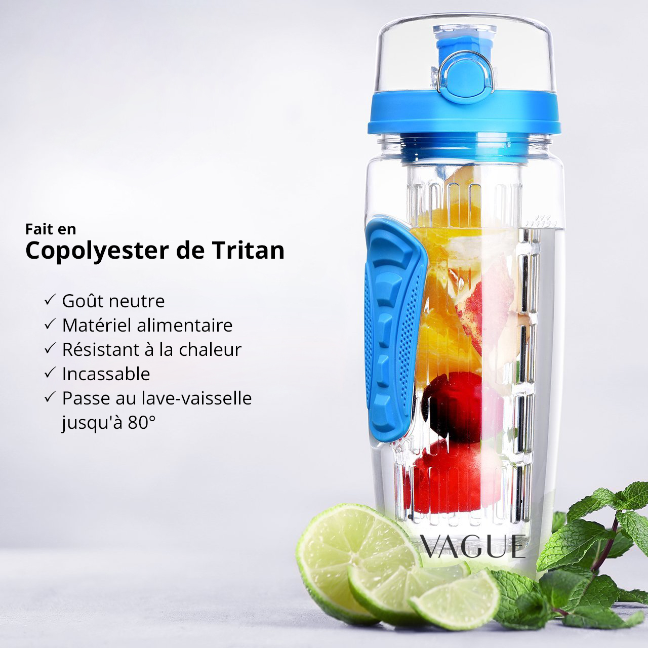 D'une capacité de plus de 900 ml, l'infuseur VITALITY est facile à nettoyer grâce au compartiment à fruits amovible. Il est fabriqué en tritan sans BPA et est résistant aux rayures.