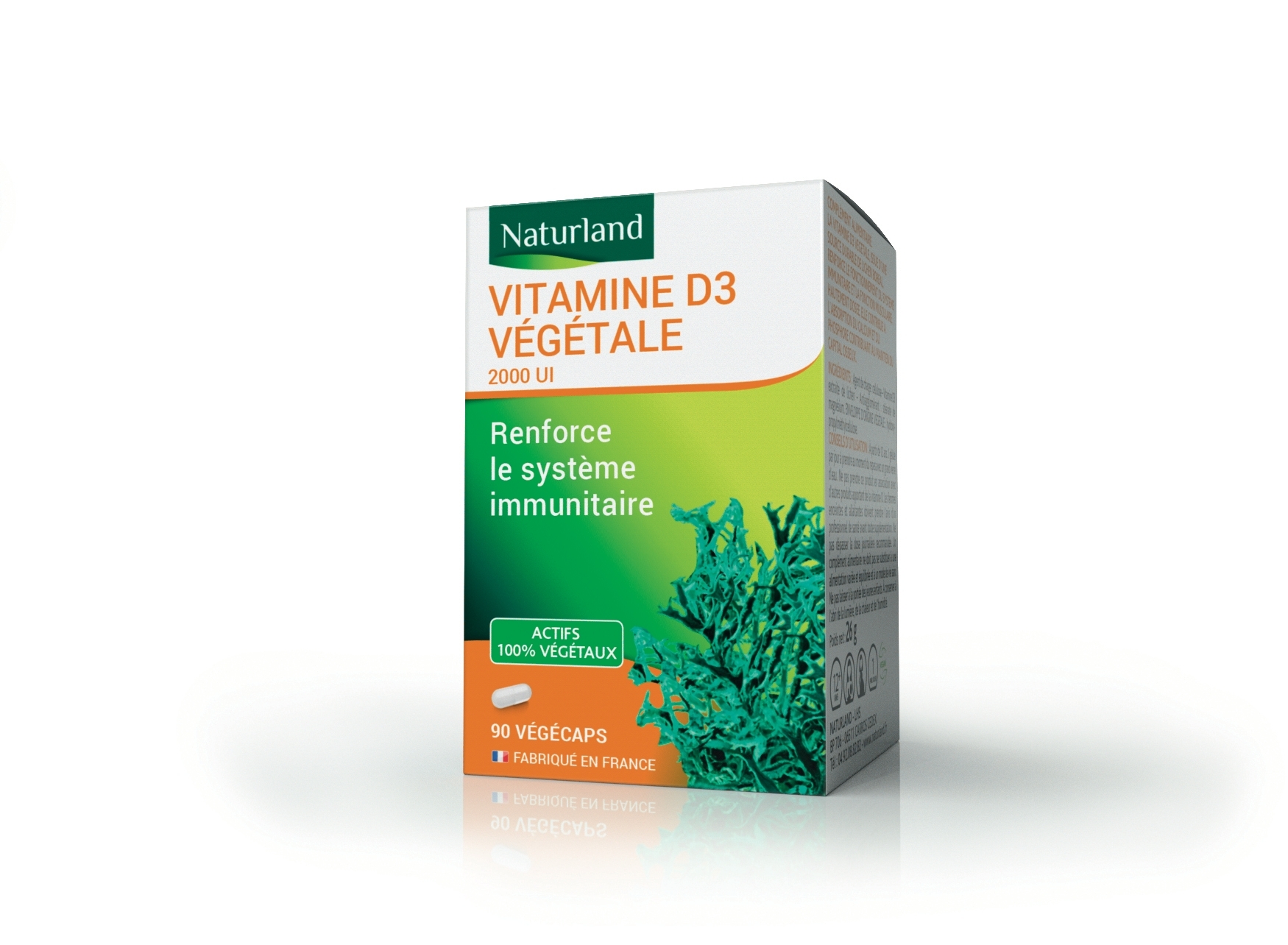Complément Alimentaire. La Vitamine D3 D’Origine Végétale, Issue D’Une Source Durable De Lichen Boréal, Contribue Au Bon Fonctionnement Du Systeme Immunitaire Ainsi Qu’Au Maintien Du Capital Osseux Et De La Fonction Musculaire. Hautement Dosée, Elle Contribue À L’Absorption Du Calcium Et Du Phosphore.