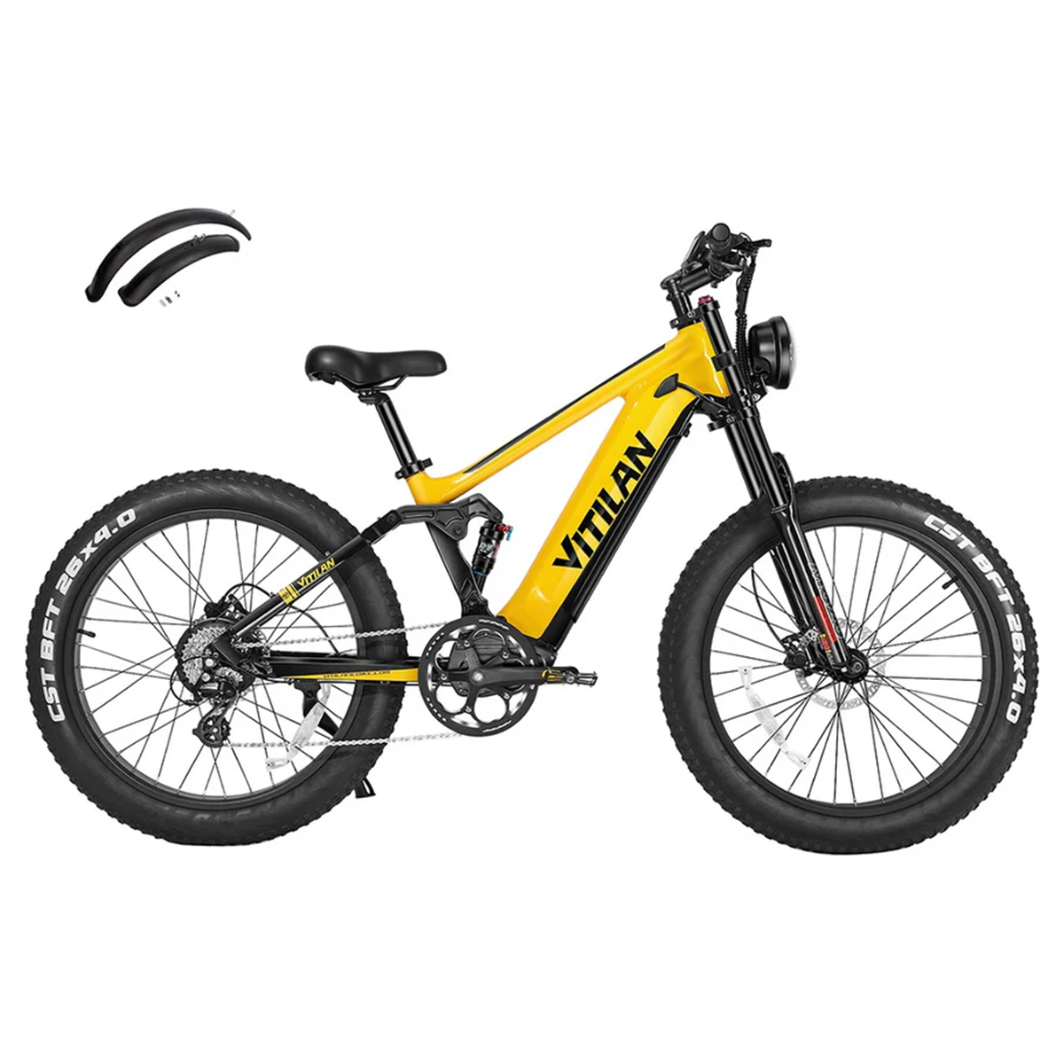 Libellé VITILAN T7 VTT Électrique - ​​Moteur Bafang 750 W - Batterie 48 V 20 Ah 960 Wh - 8 Vitesses - Jaune