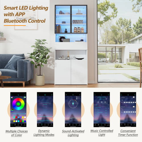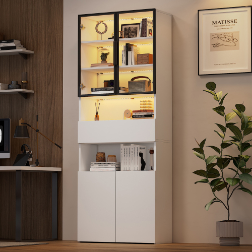 | Libellé | Vitrine 70*30*200cm, avec portes vitrées et led, armoire haute avec de rangement ouverte, bibliothèque |