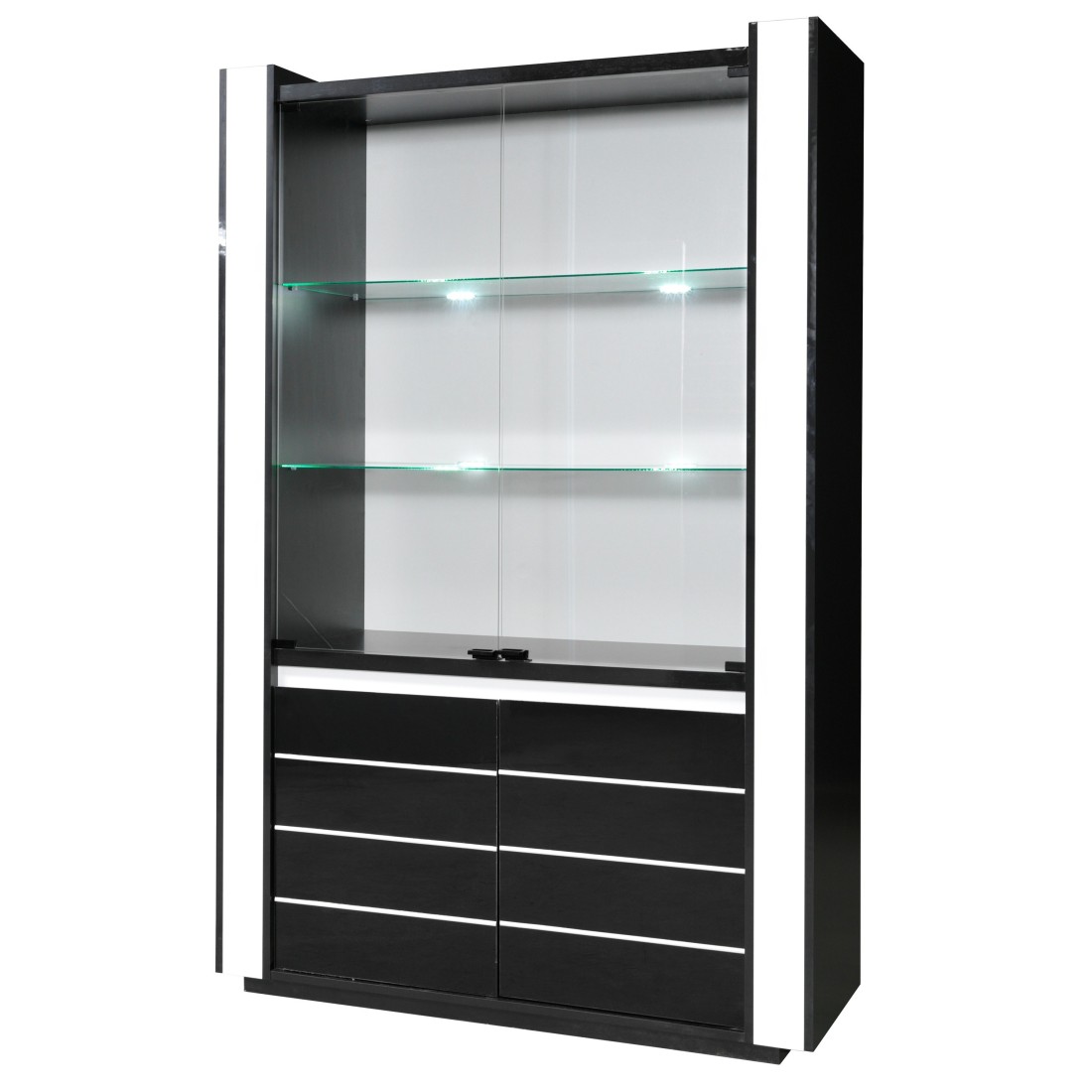 Libellé Vitrine argentier vaisselier LINA noir et blanc avec LED – 4 portes battantes