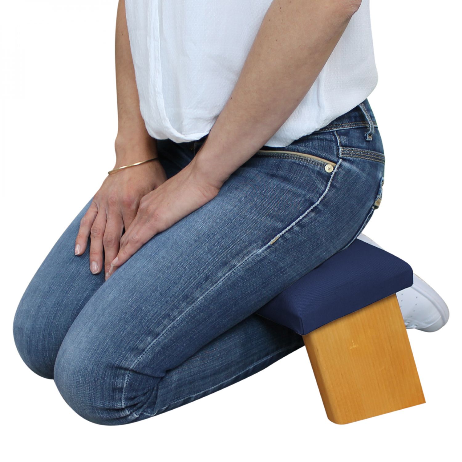 Vivezen - Banc, tabouret de méditation, yoga pliant en bois - Bleu