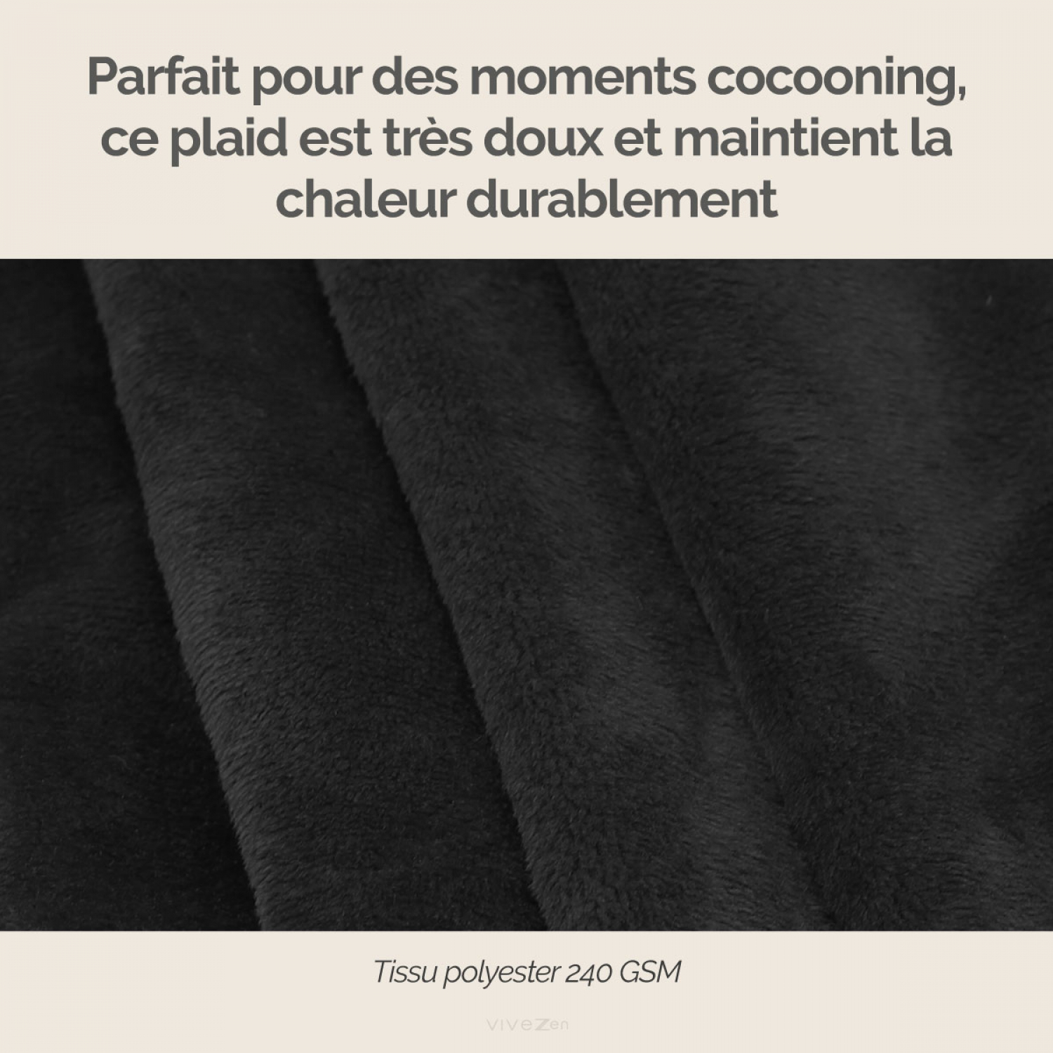 | Libellé | Vivezen - Couverture, plaid polaire, jeté de canapé 150 x 200 cm en flanelle ultra doux - Noir |