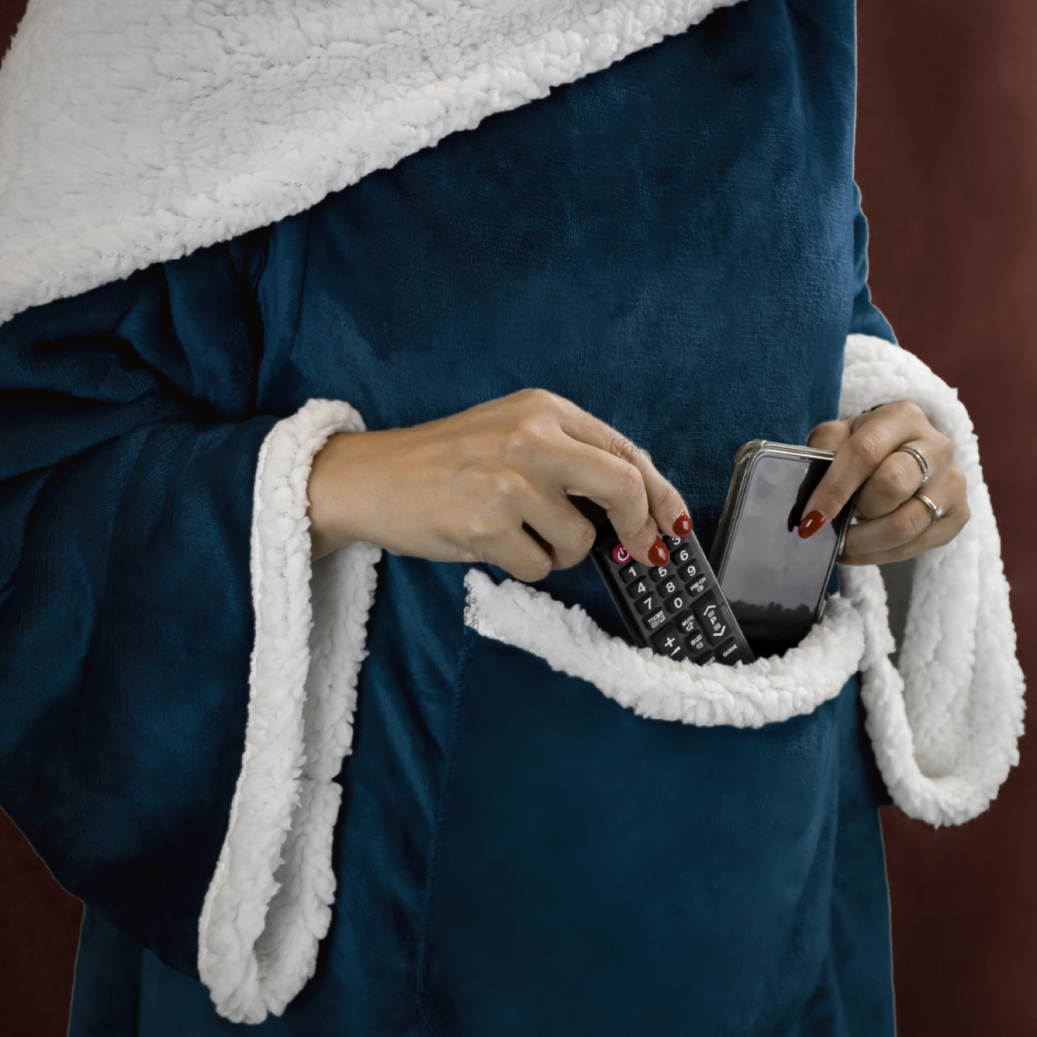 Vivezen - Couverture polaire, plaid intégral avec manches et poche - 120 x 160 cm - Sherpa et flanelle -