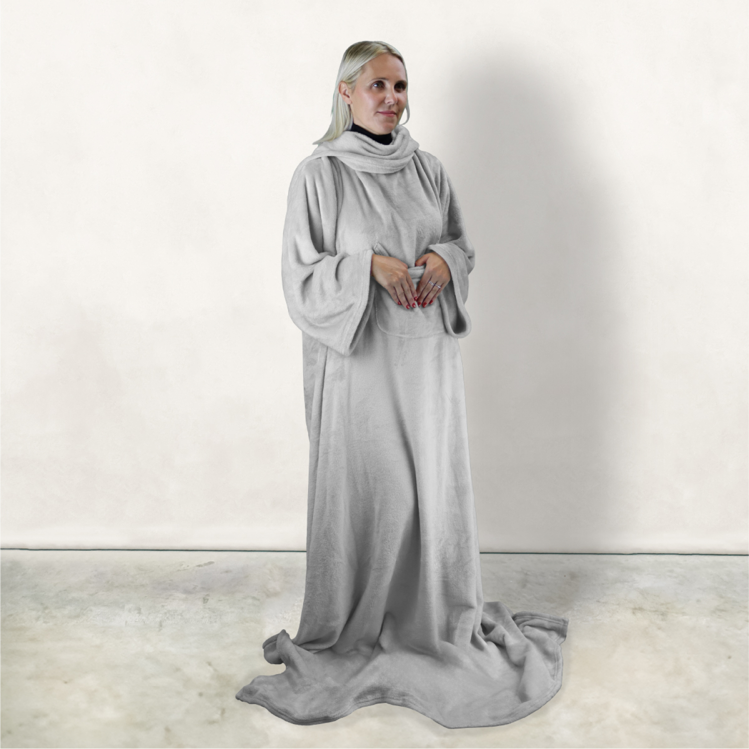 Vivezen - Couverture polaire plaid intégral avec manches et poche - Adulte 210 x 140 cm - Gris