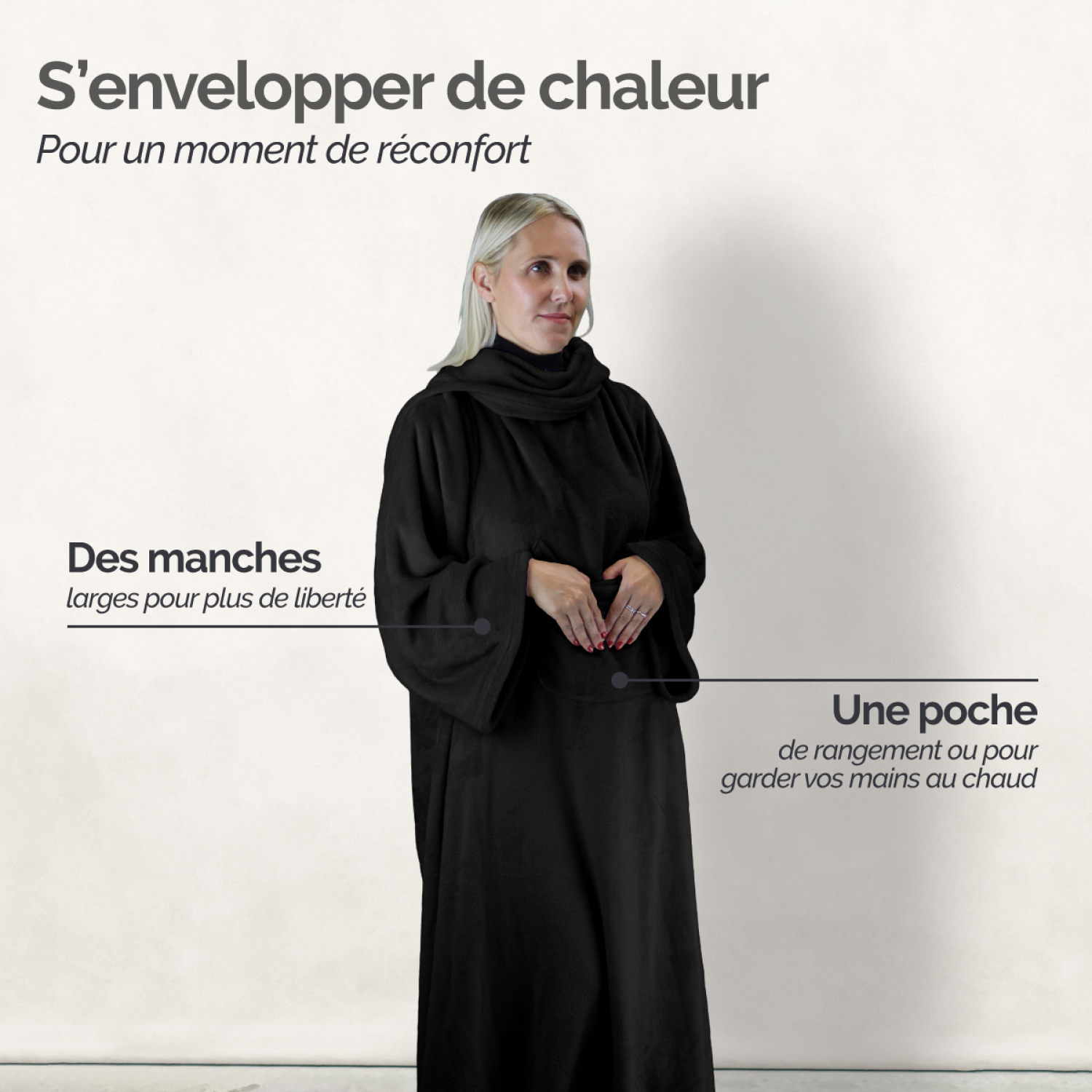 | Libellé | Vivezen - Couverture polaire plaid intégral avec manches et poche - Adulte 210 x 140 cm - Noir |