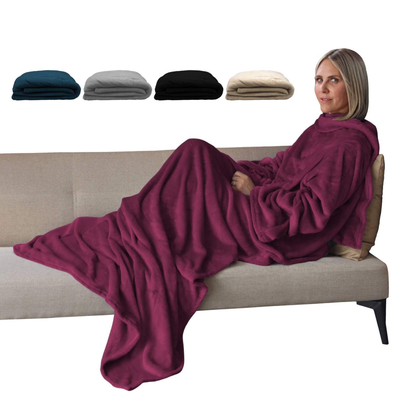 Vivezen - Couverture polaire plaid intégral avec manches et poche - Adulte 210 x 140 cm - Prune