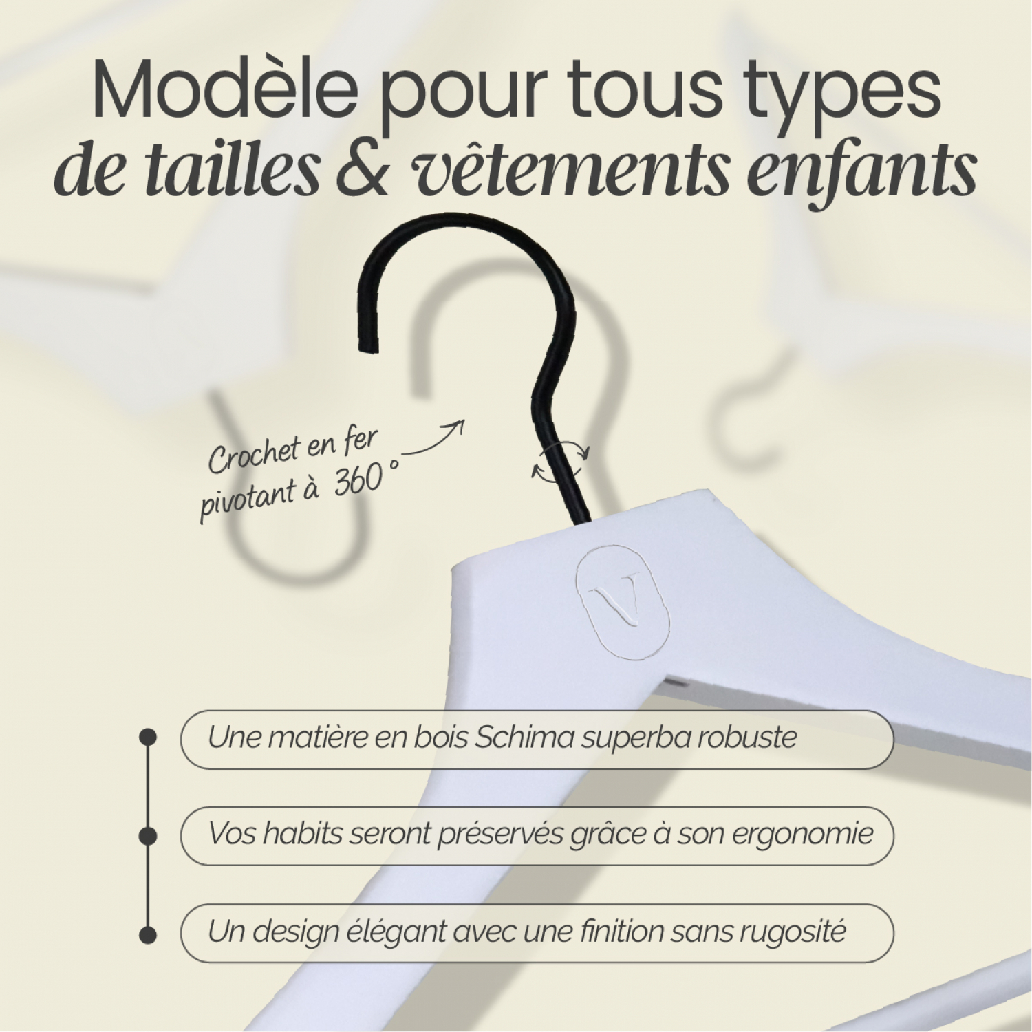 | Libellé | Vivezen - Lot de 20 cintres 32 cm pour vêtements enfant premium avec crochet pivotant à 360° - Blanc |