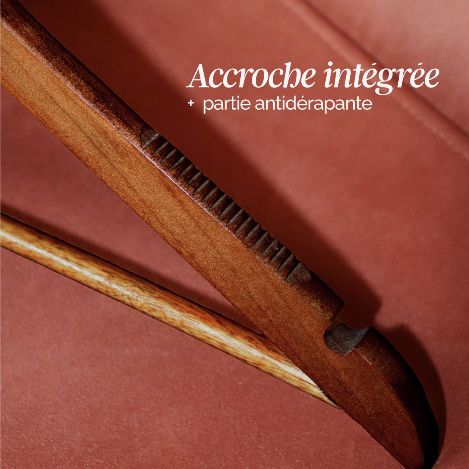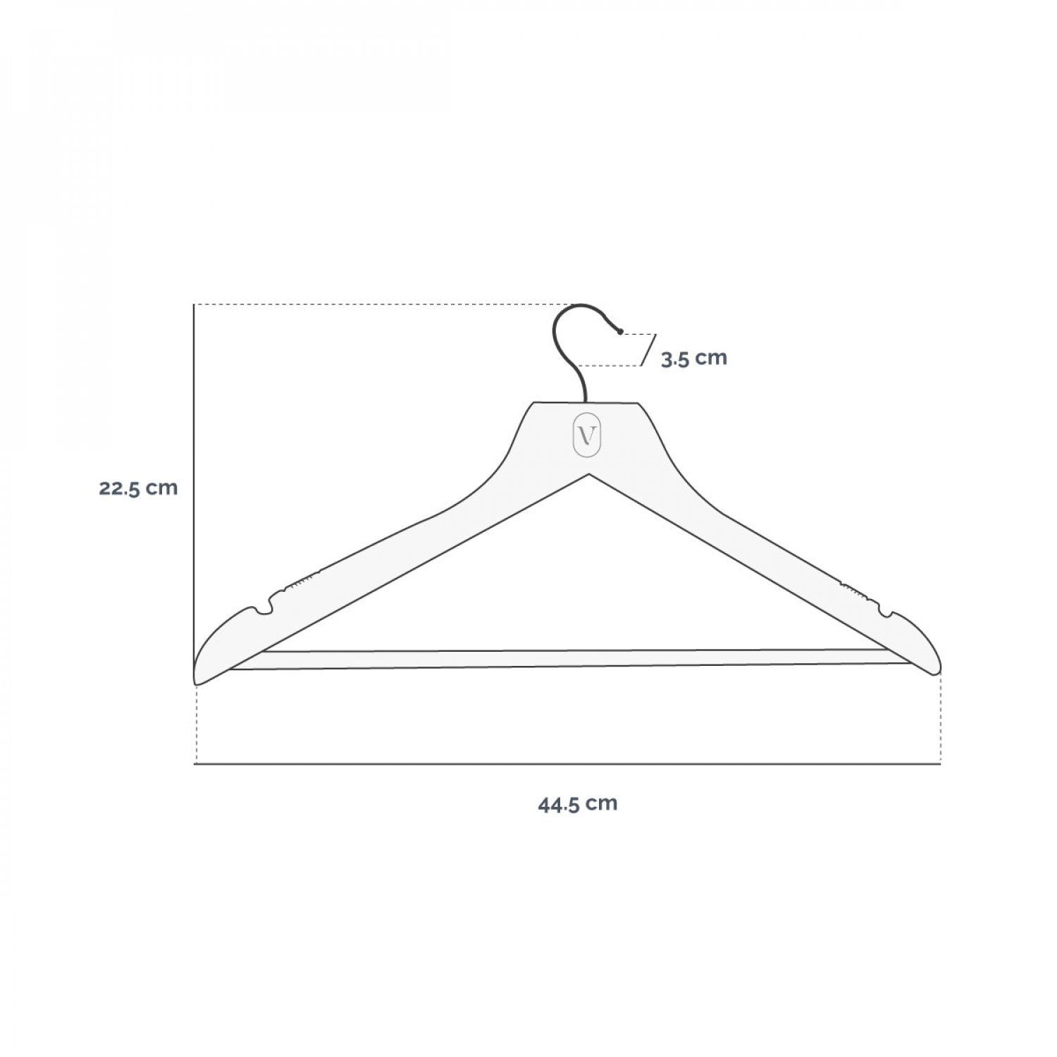 Ce lot de cintres premium pour adulte, de la marque Vivezen gamme La Voguette, est un indispensable. Pratique pour l'organisation de vos placards, il permet de ranger efficacement, et de manière élégante, les vêtements. La matière en bois Schima Superba robuste de haute qualité permet de supporter tous types de vêtements sans les abimer, grâce à sa finition lisse. Ces cintres sont durables, solides et sans rugosité. La gamme premium se distingue avec sa forme moustache. La forme de vos habits sera préservée grâce à l'ergonomie de ce modèle. De plus, il détient une accroche à chacune de ses extrémités ainsi qu'une partie antidérapante, pour éviter la chute du vêtement, ainsi qu'un crochet pivotant noir et une barre pour suspendre les pantalons. Sa longueur représente 44.5 cm, sa hauteur est de 22.5 cm et l'arc de cercle du crochet est de 3.5 cm. Les cintres sont légers et faciles à transporter. Disponible en plusieurs lots et coloris.