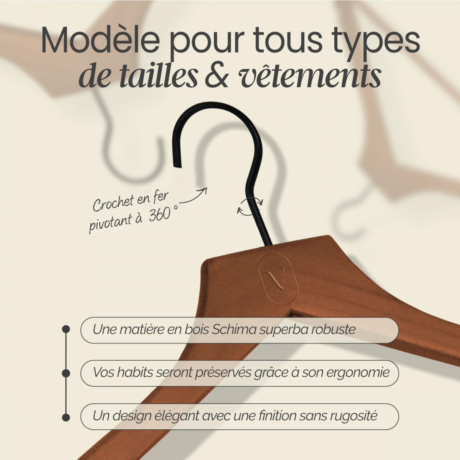 | Libellé | Vivezen - Lot de 40 cintres 44.5 cm pour vêtements adulte premium avec crochet pivotant à 360° - Bois foncé |