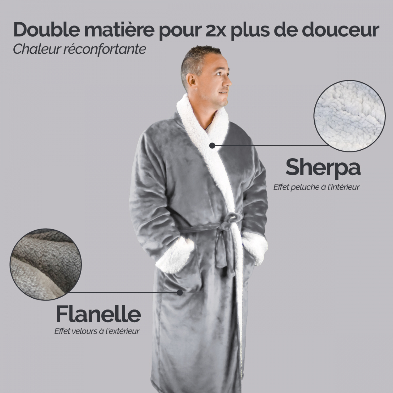 | Libellé | Vivezen - Peignoir, robe de chambre polaire mixte, Utra Douce - L/XL - Gris |