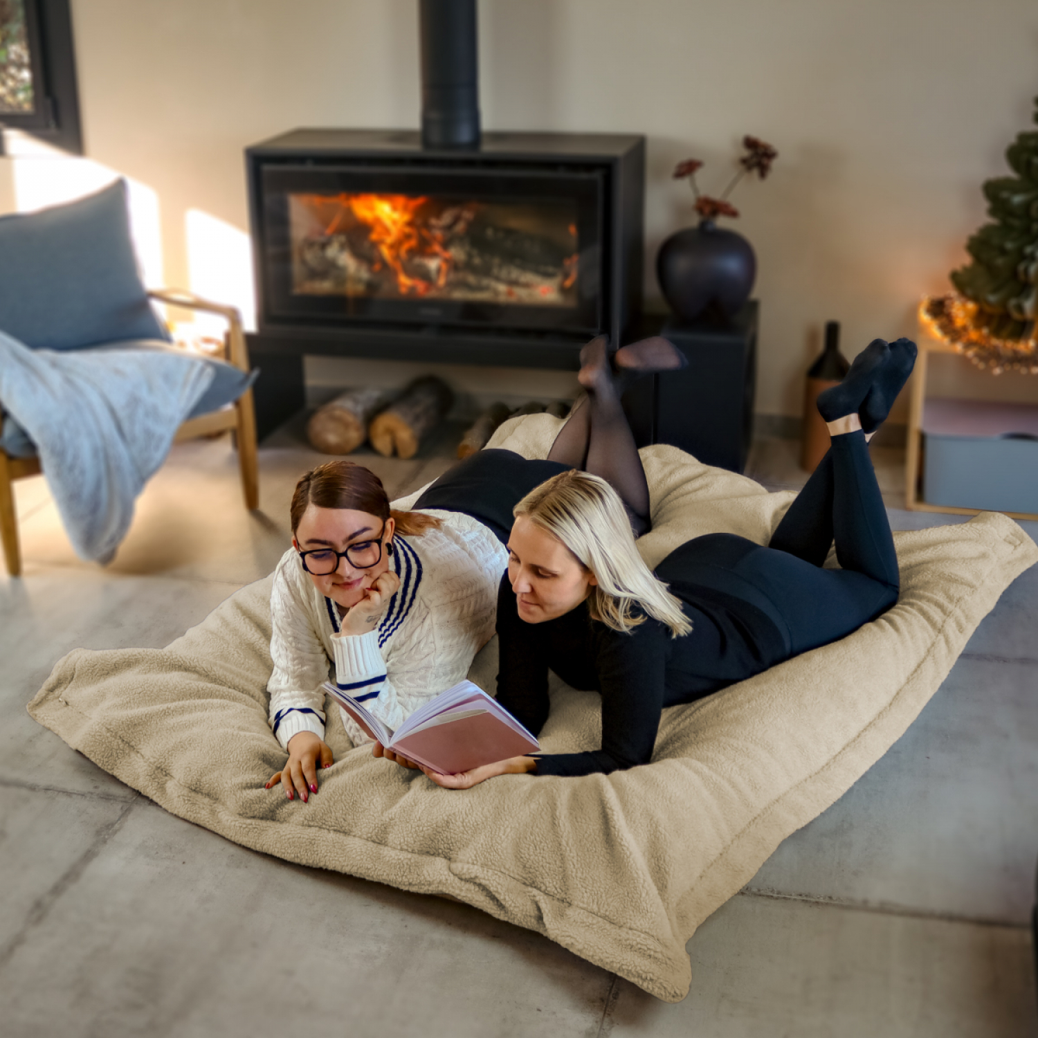 Le pouf Vivezen vous invite à vous asseoir ou à vous allonger confortablement dans votre salon devant la cheminée ou encore pour regarder la tv dans votre chambre. Enveloppé dans une housse polaire, le pouf est d’une grande douceur, agréable, il garde la chaleur produite par le corps pour un effet relaxant. Rembourré de flocons en mousse recyclée de 2.7 kg (petit modèle) et 5.4 kg (grand modèle), le pouf s’adapte à votre posture et à votre morphologie grâce à un rembourrage parfaitement homogène. Résultat : une assise ferme, aérée et très confortable. Très pratique, vous pouvez déhousser le pouf et enlever la housse en sherpa pour la passer en machine grâce à une fermeture éclair. La housse de rembourrage dispose aussi d’une fermeture afin d’ajuster le rembourrage à votre guise. Disponible en deux dimensions, le pouf mesure environ 90 cm de largeur par 140 cm de longueur et le pouf XXL mesure 150 cm par 180 cm. La housse en sherpa est lavable, programme doux à 30°. Plusieurs coloris disponibles.