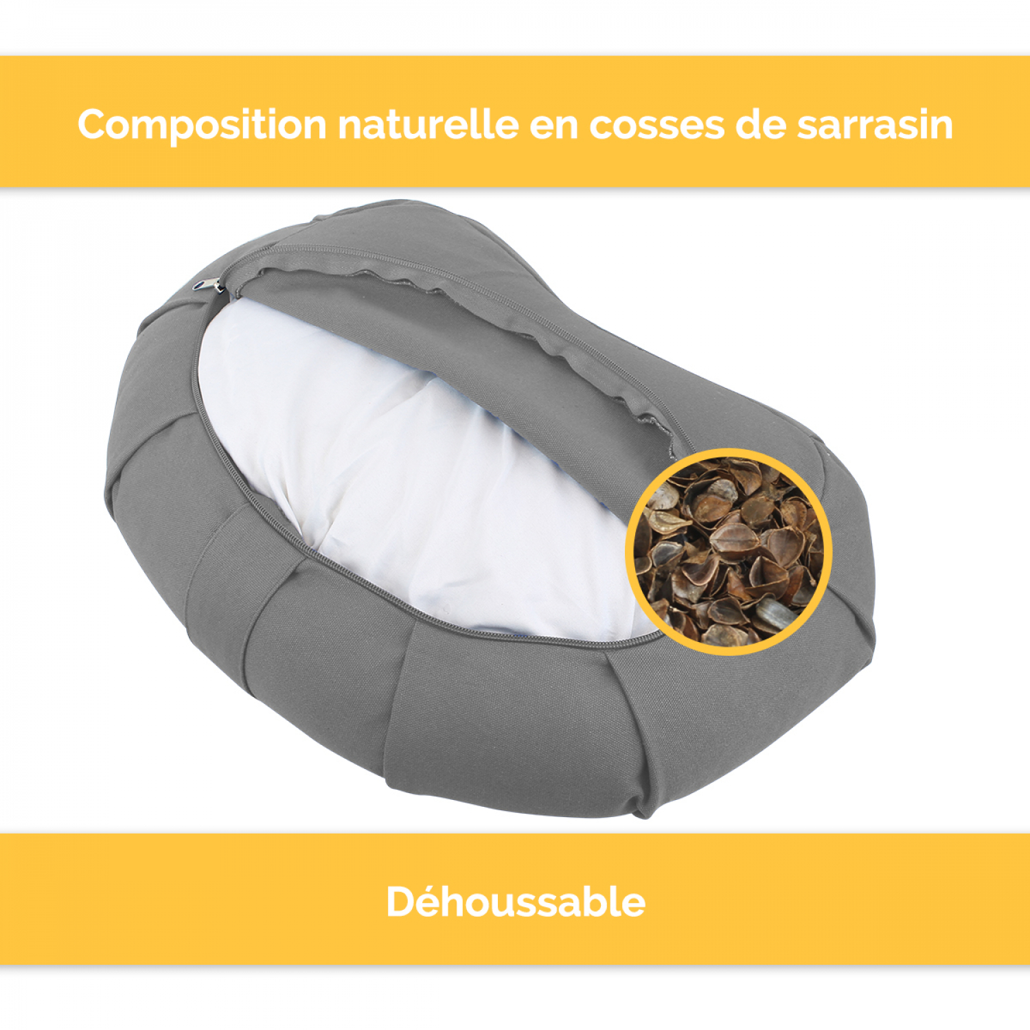 | Libellé | Vivezen - Pouf, zafu, coussin de méditation, yoga - Demi-lune - 44 x 27 x 13 cm - Gris |