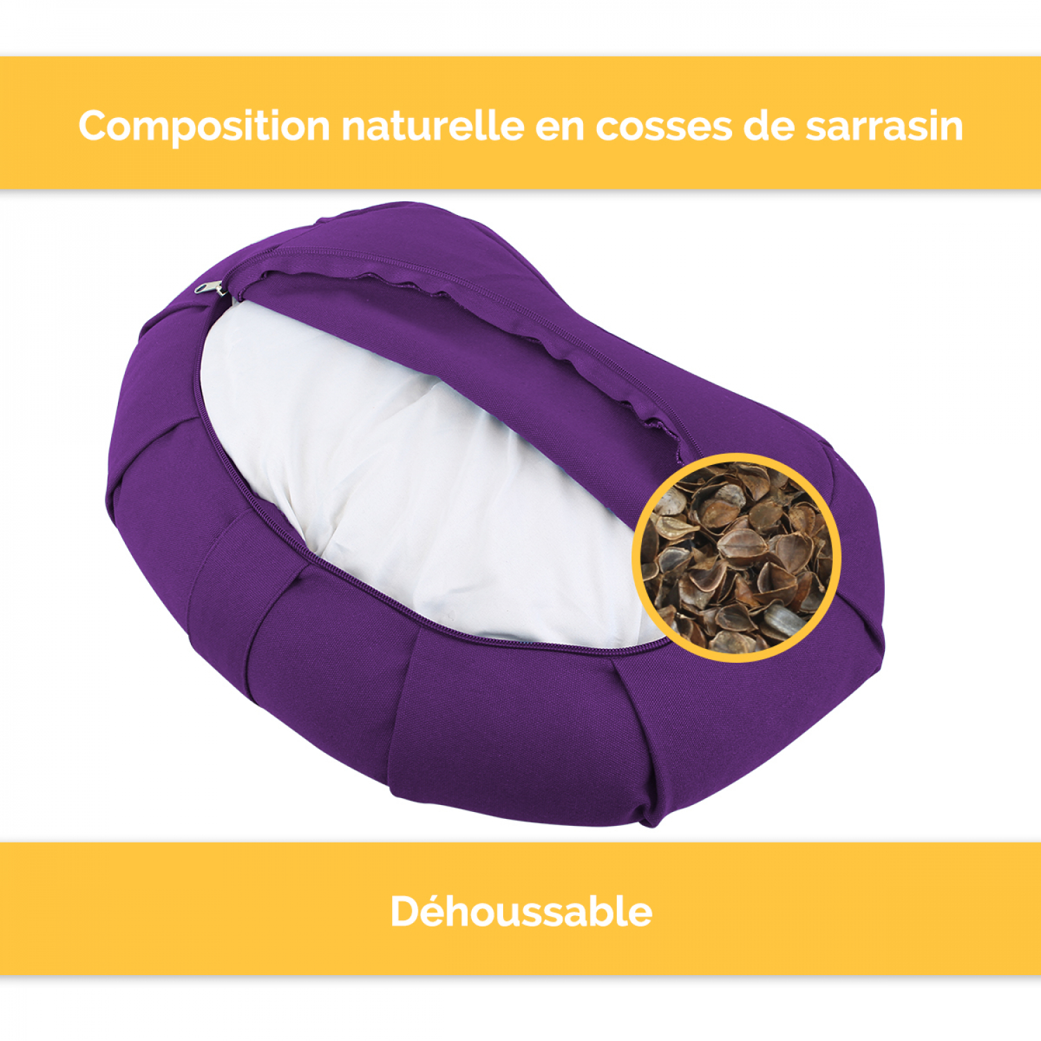 | Libellé | Vivezen - Pouf, zafu, coussin de méditation, yoga - Demi-lune - 44 x 27 x 13 cm - Prune |