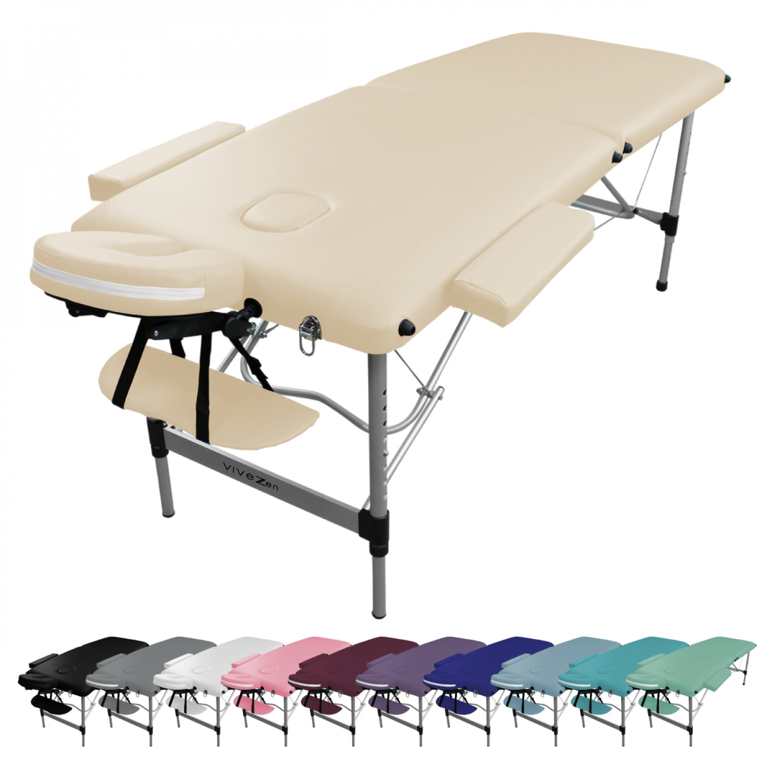 Vivezen - Table de massage pliante 2 zones en aluminium + Accessoires et housse de transport - Beige