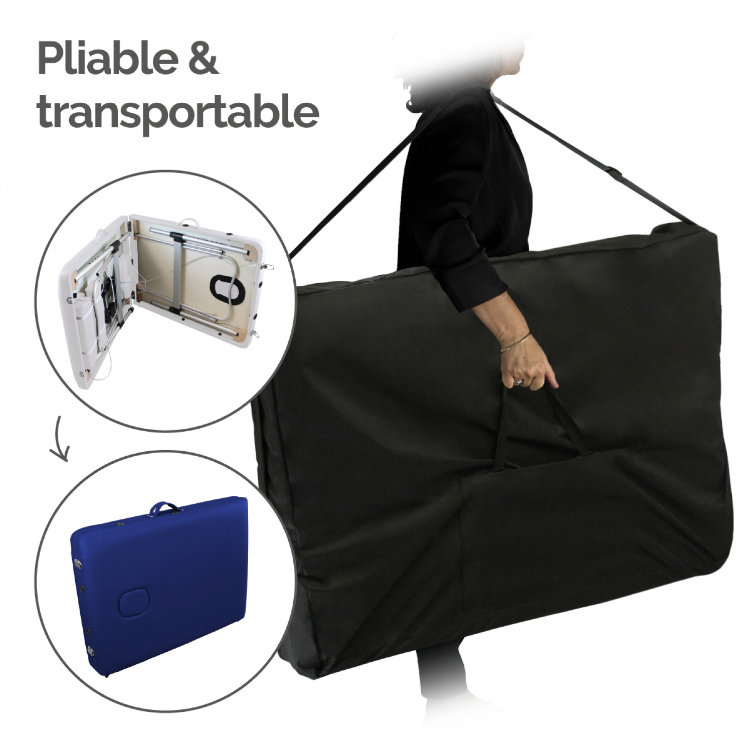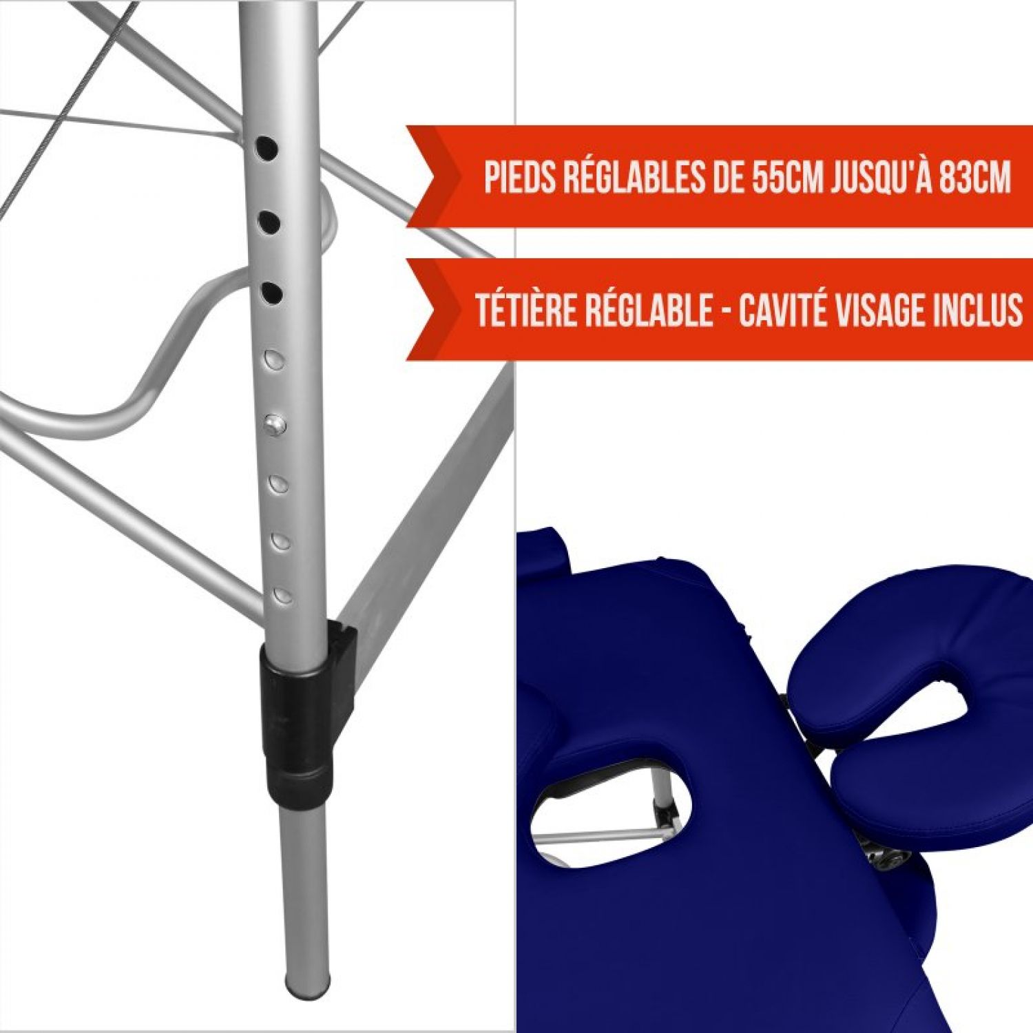Vivezen - Table de massage pliante 2 zones en aluminium + Accessoires et housse de transport - Bleu Azur