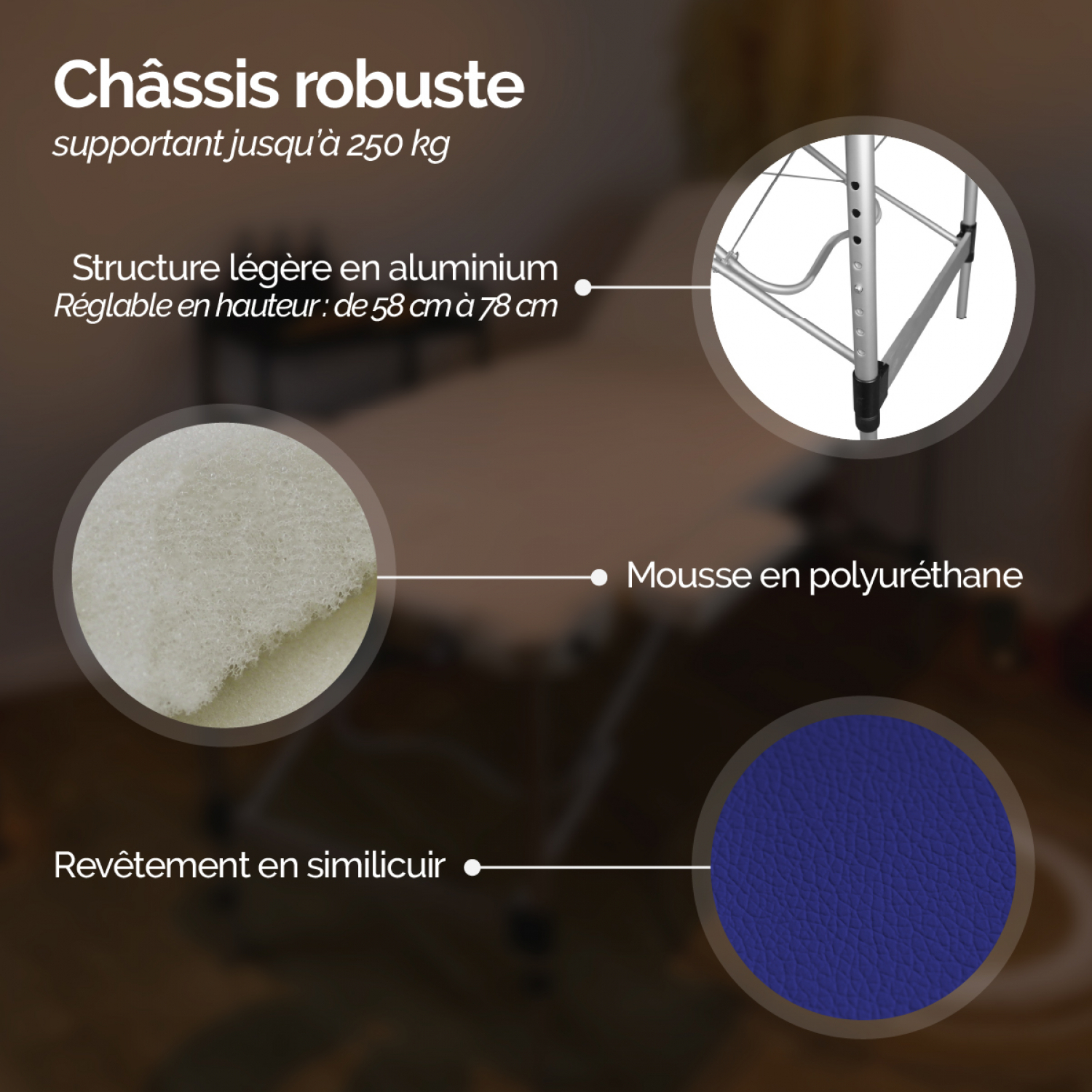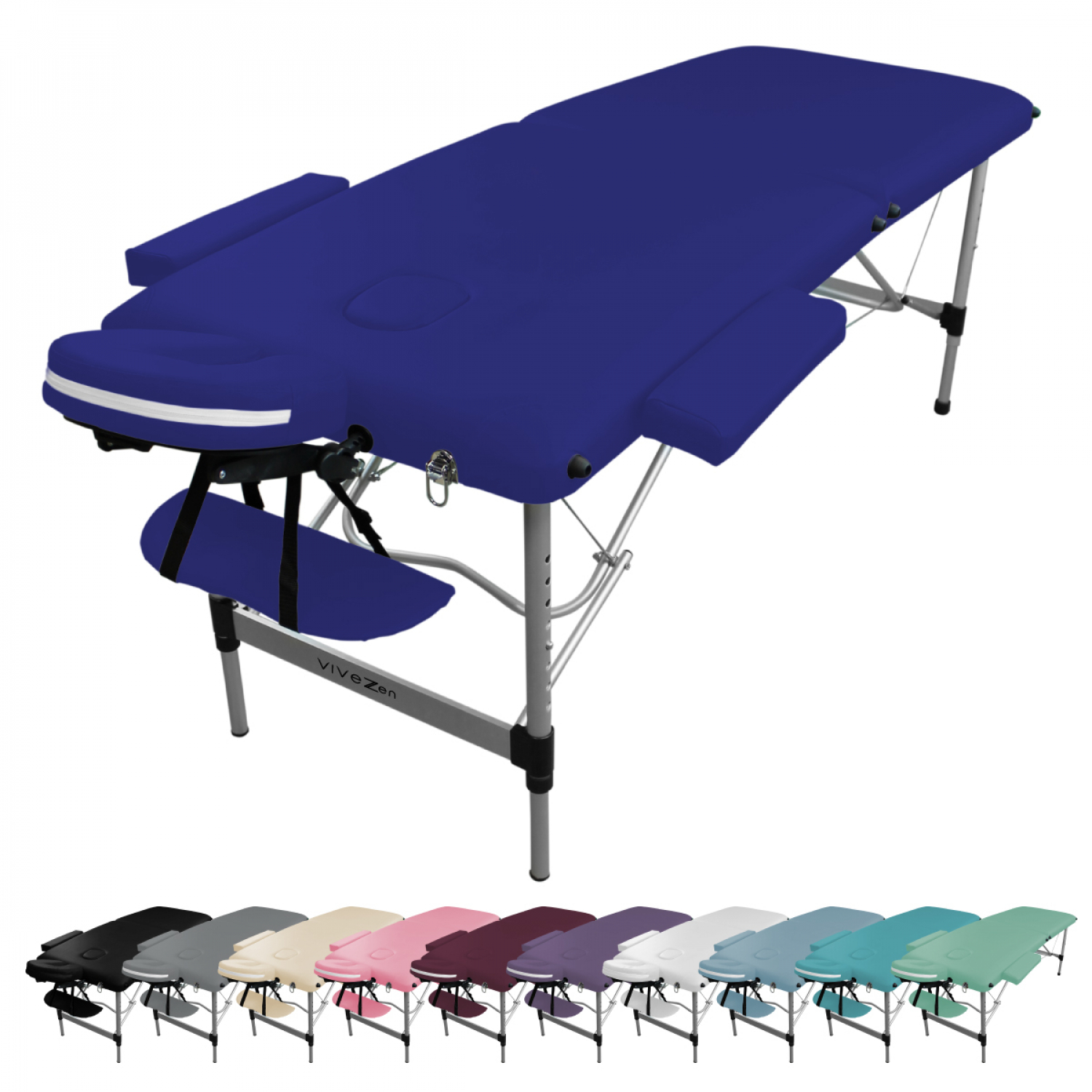 | Libellé | Vivezen - Table de massage pliante 2 zones en aluminium + Accessoires et housse de transport - Bleu Azur |