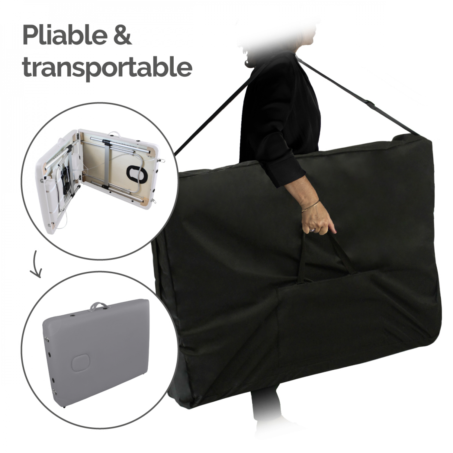 | Libellé | Vivezen - Table de massage pliante 2 zones en aluminium + Accessoires et housse de transport - Gris |